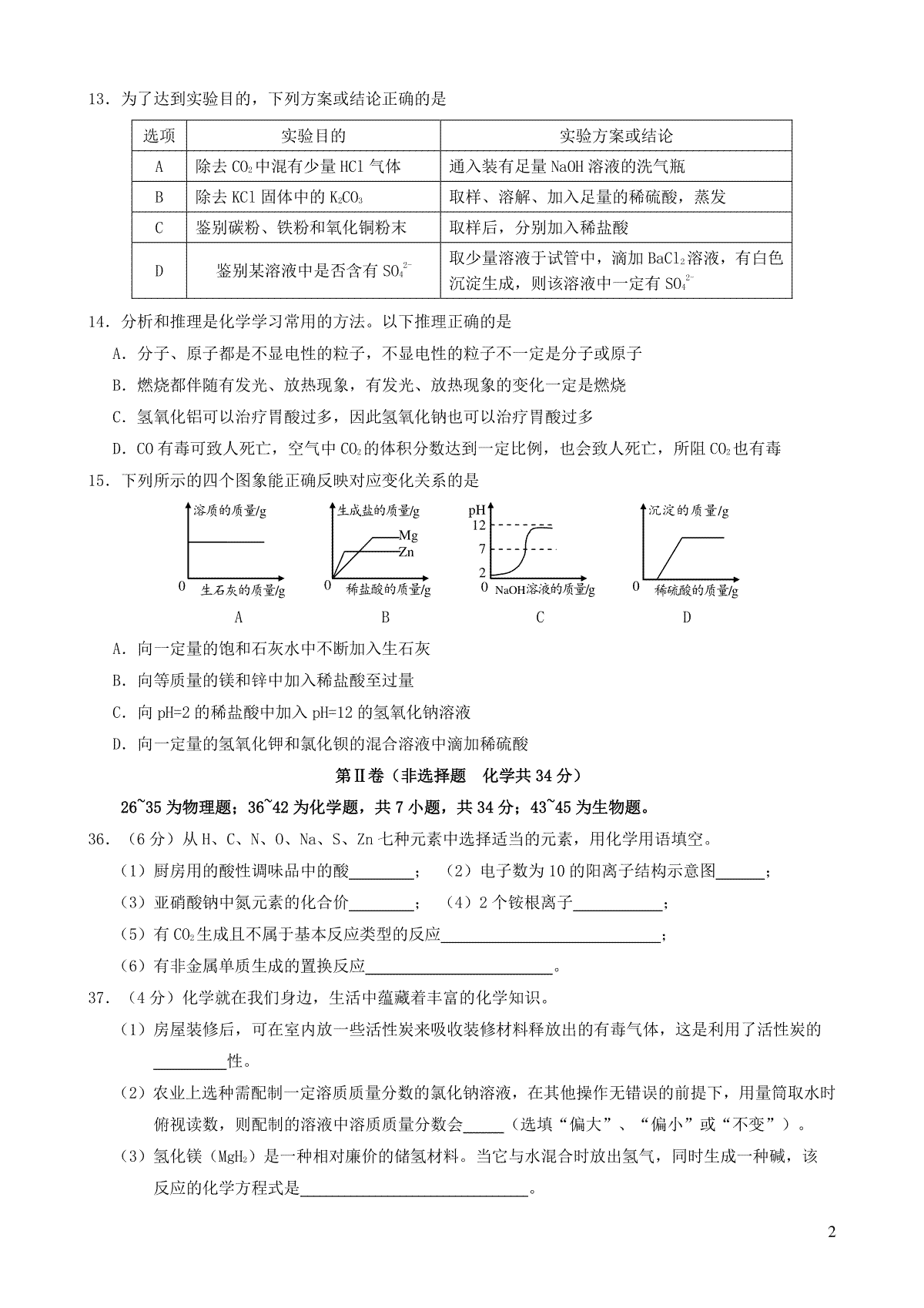河南省2016年中考化学真题试题(扫描版,含答案)