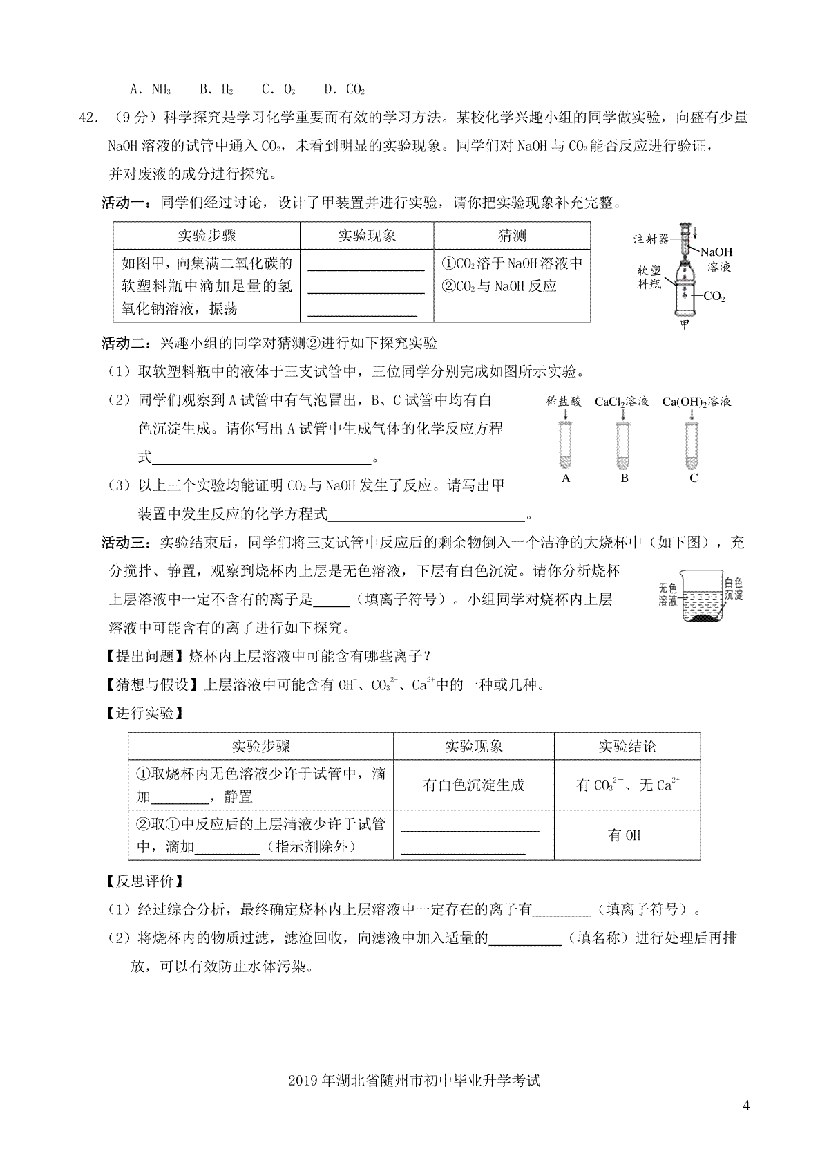 下载湖北省随州市2019年中考化学真题试题PDF格式或doc