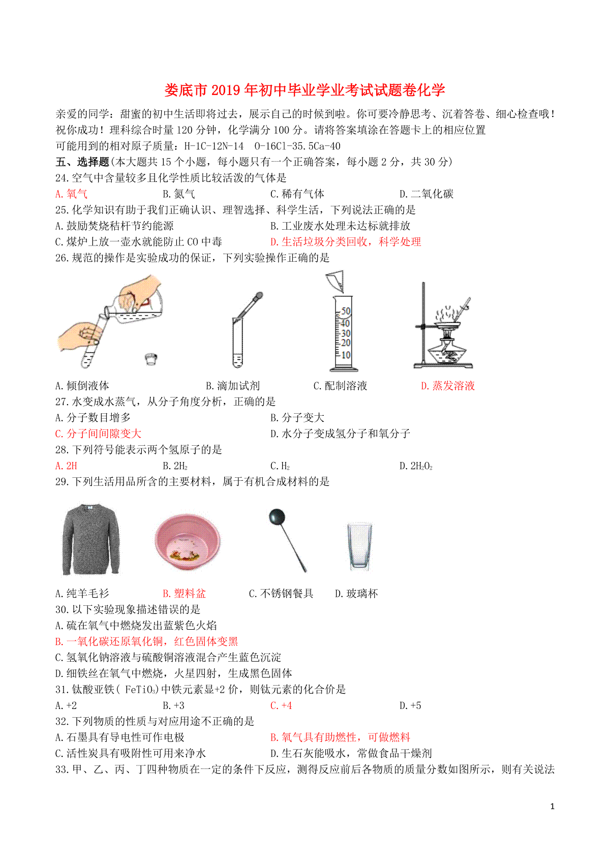 如果你想下载湖南省娄底市2019年中考化学真题试题DOC或PDF版,请点击本文末链接!