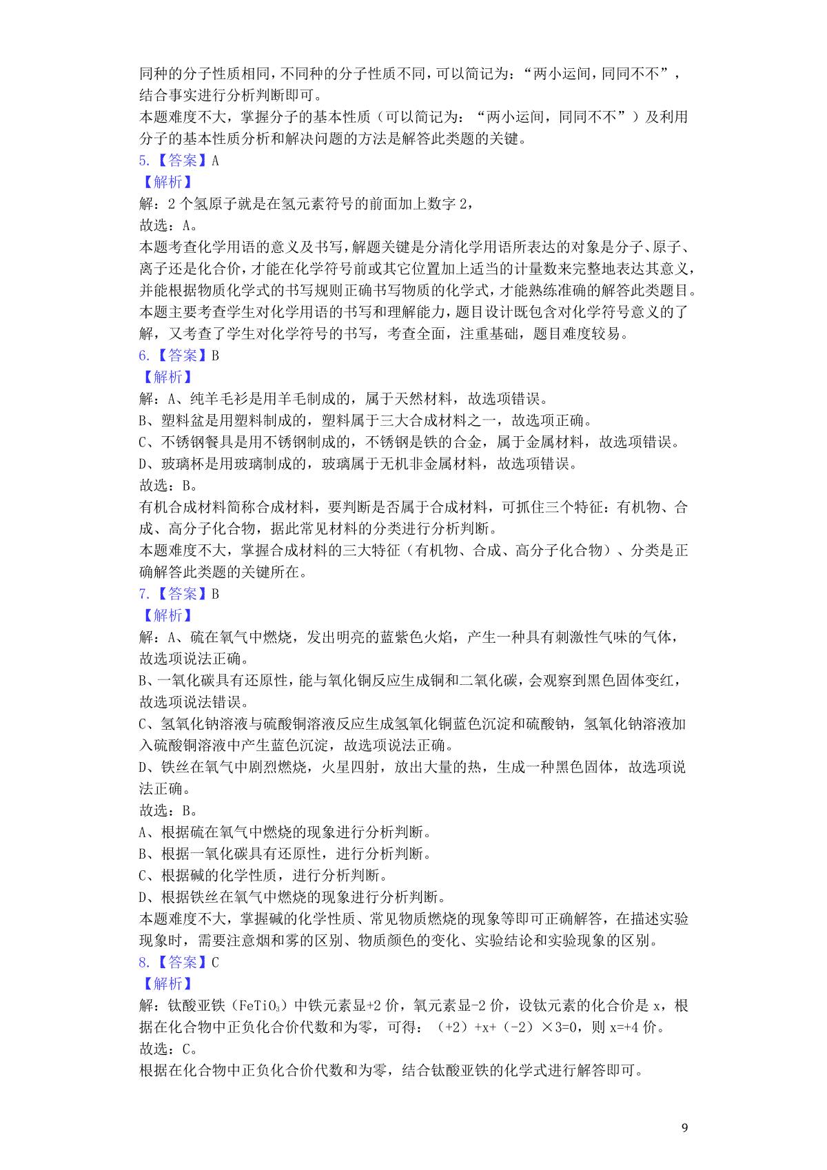 8.湖北省荆门市2019年中考化学真题试题(含解析)