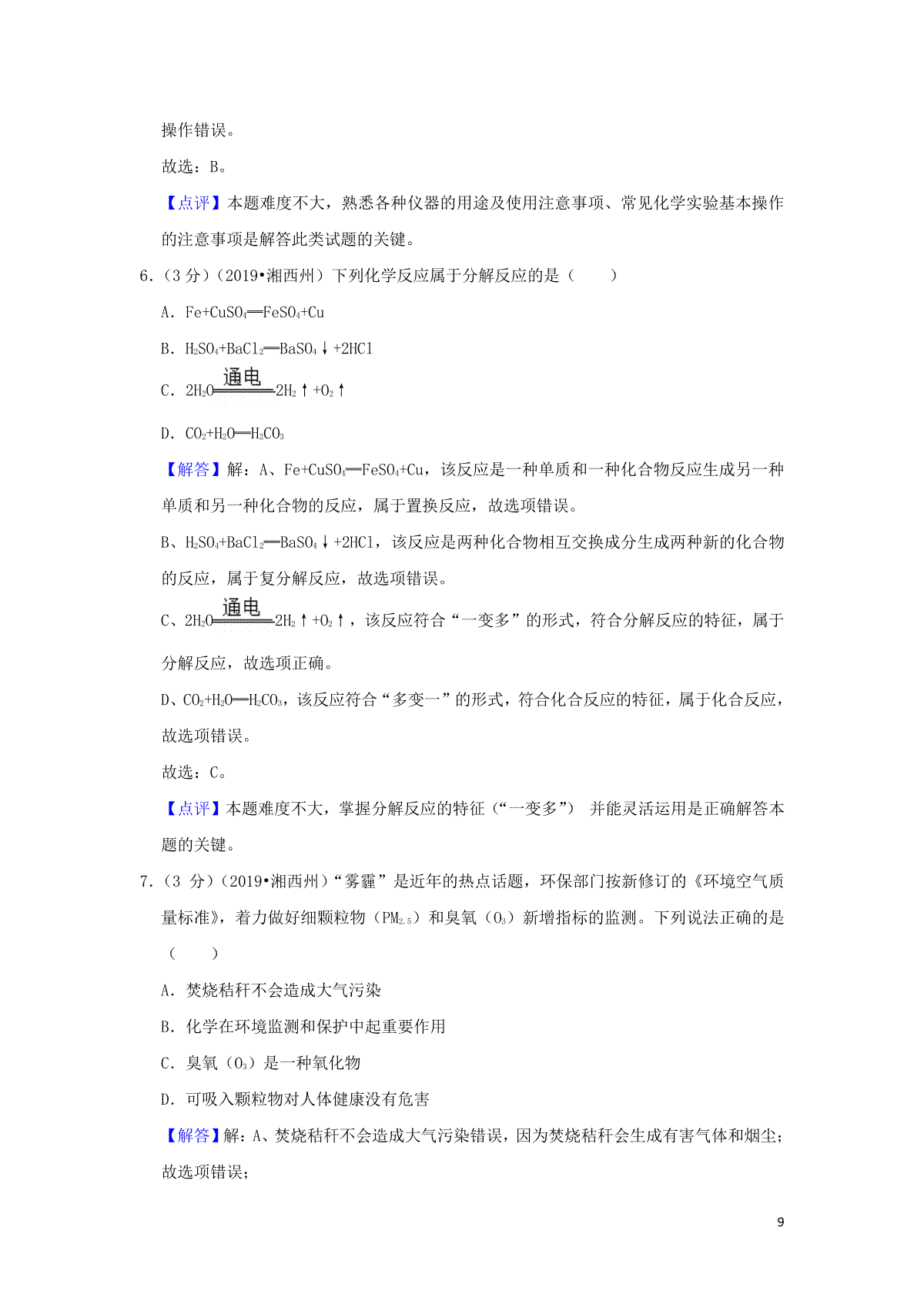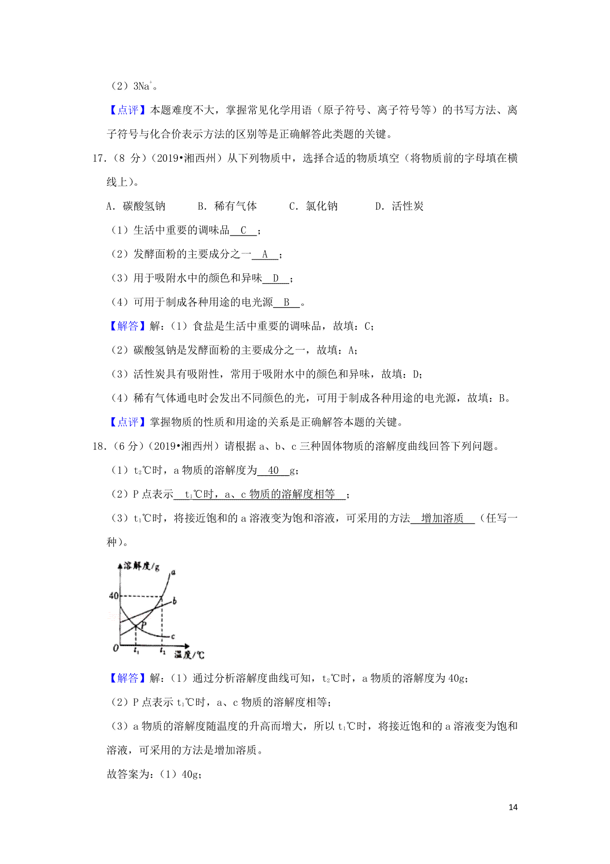 3.湖南省湘潭市2019年中考化学真题试题