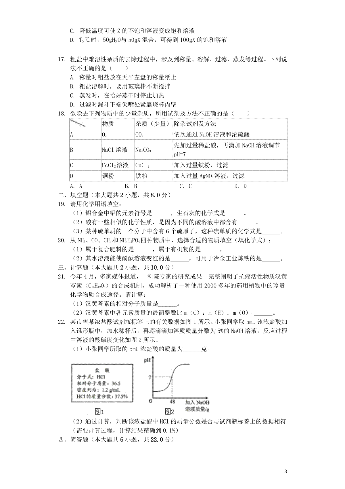 3.湖南省湘潭市2019年中考化学真题试题(含解析)