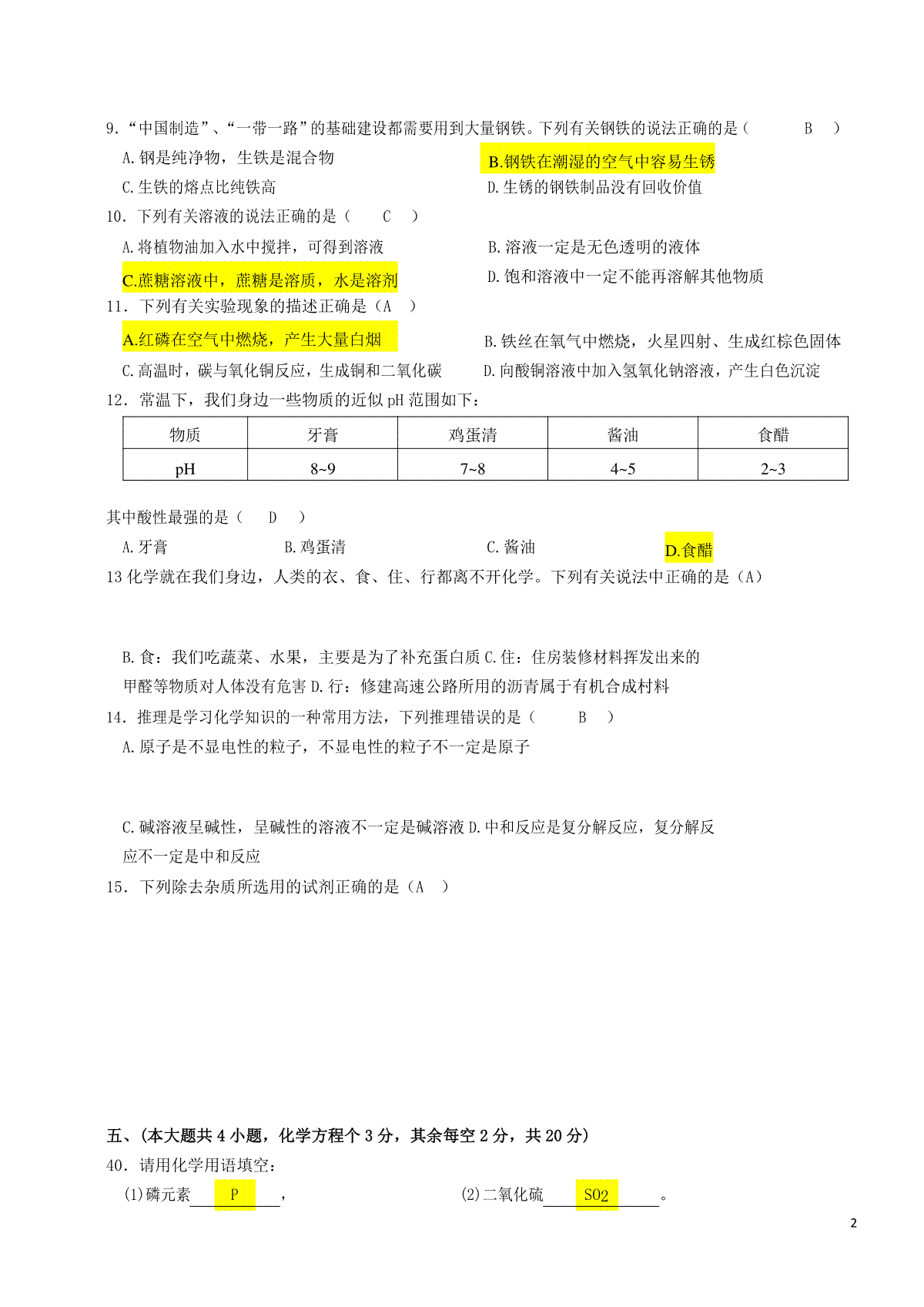 河南省2016年中考化学真题试题(扫描版,含答案)