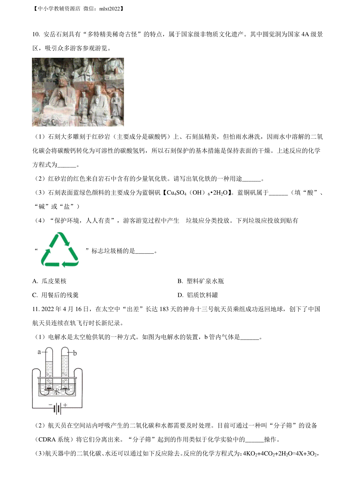 3.精品解析:2022年四川省绵阳市中考化学真题(原卷版)