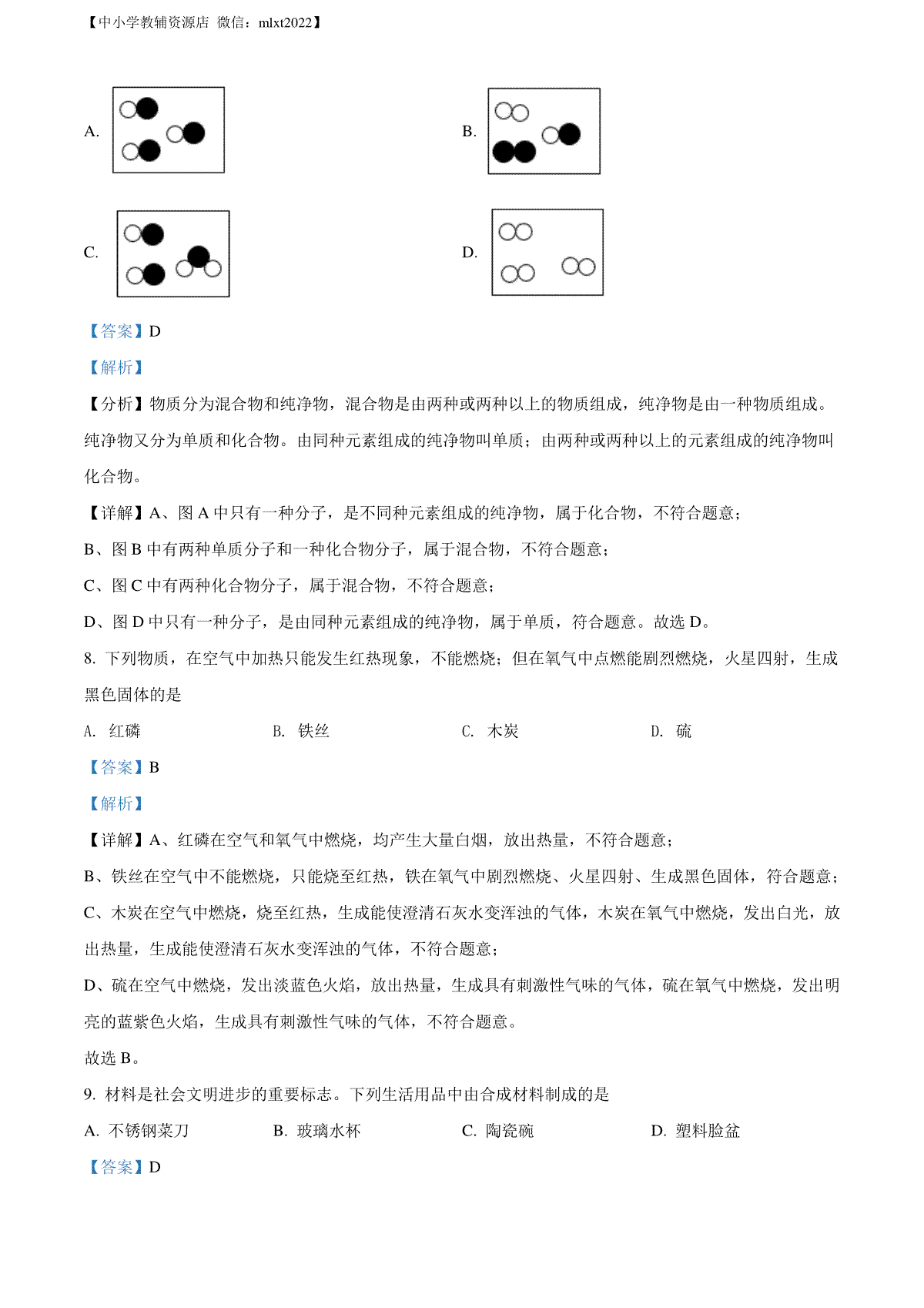 8.精品解析:2022年湖北省黄冈市孝感市咸宁市三市中考化学真题(原卷版)