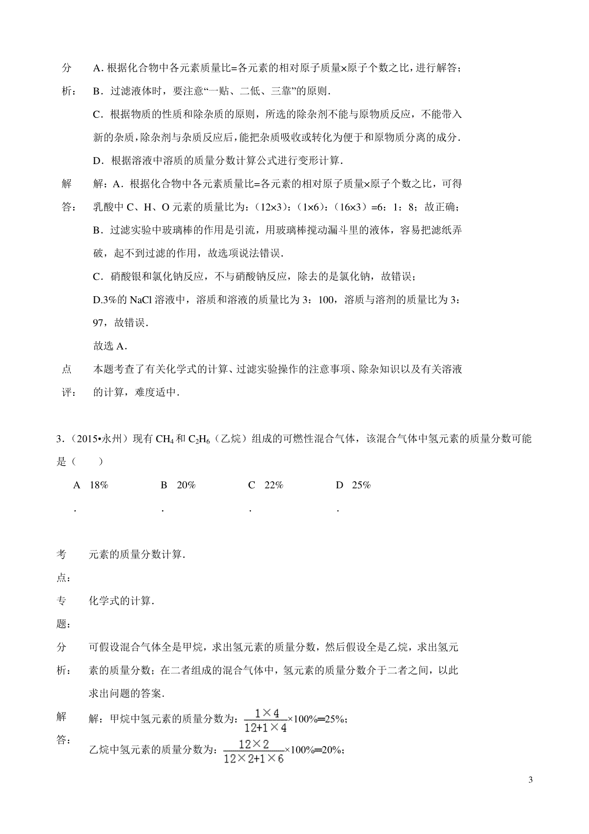 如果你想下载2015年化学中考试题分类汇编:有关质量、质量分数的计算(含答案)DOC或PDF版,请点击本文末链接!