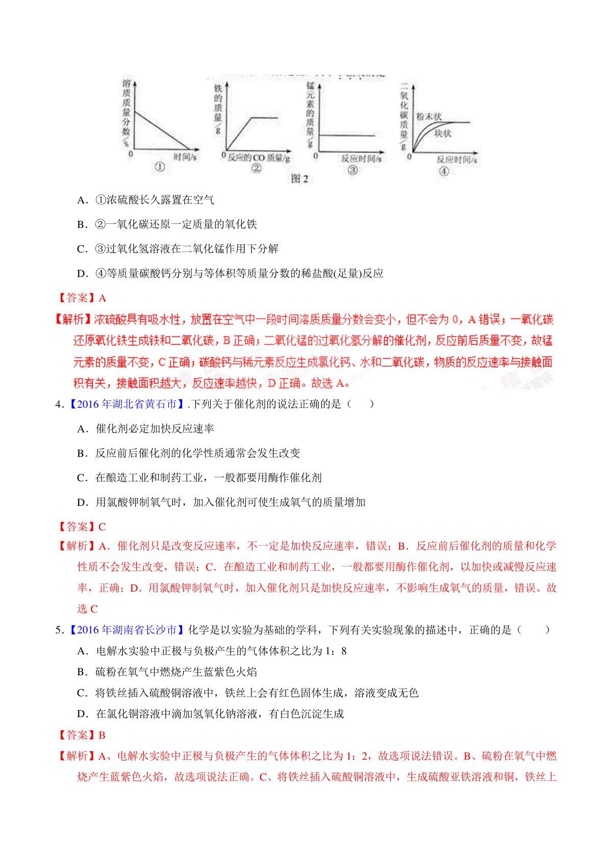 一、专题2.2 氧气及其制取(第01期)-2016年中考化学试题分项版解析汇编(解析版)