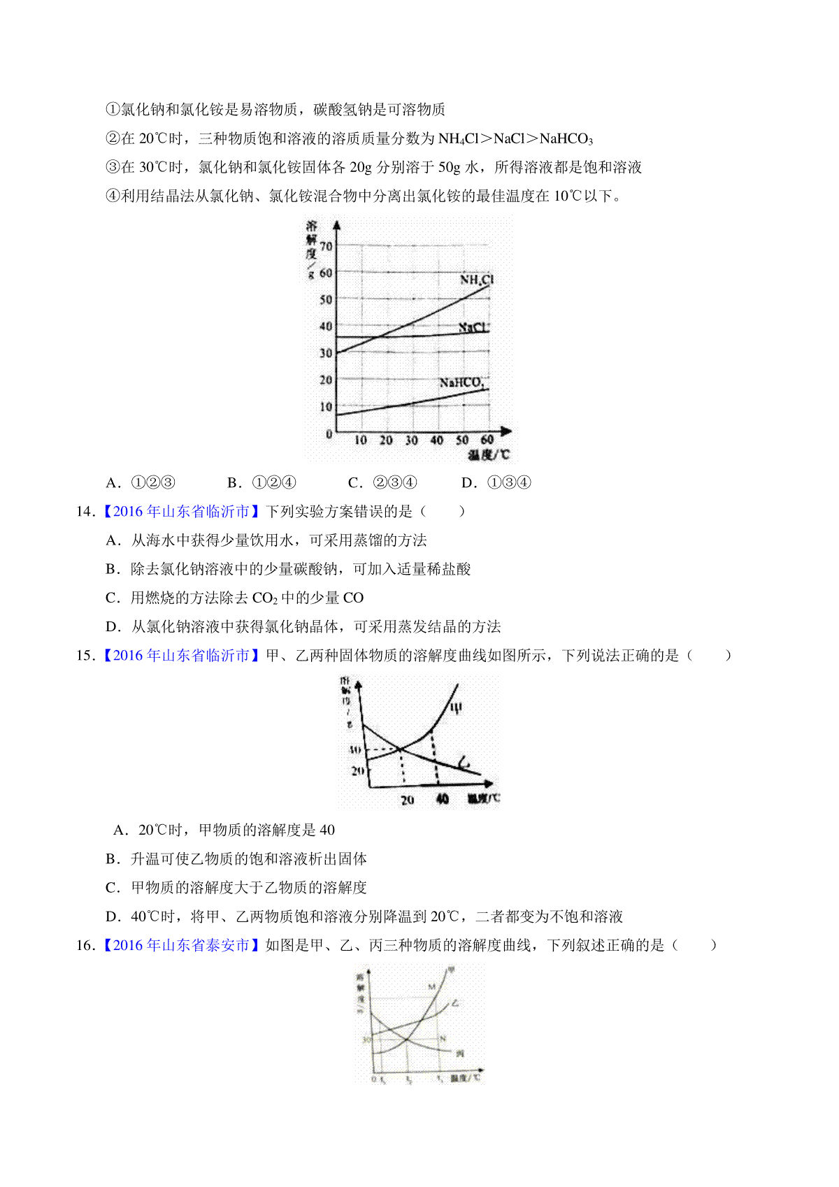 1.专题9.2 溶解度及其应用(第01期)-2016年中考化学试题分项版解析汇编(原卷版)