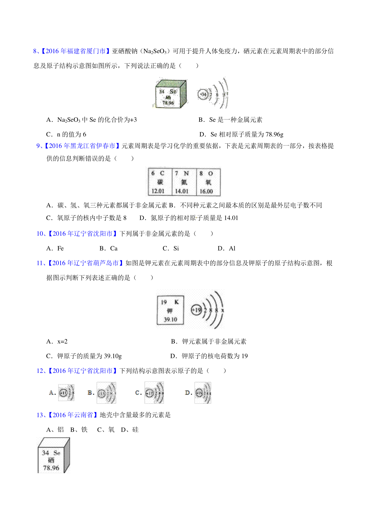 一、专题3.2 原子结构及元素(第03期)-2016年中考化学试题分项版解析汇编(原卷版)