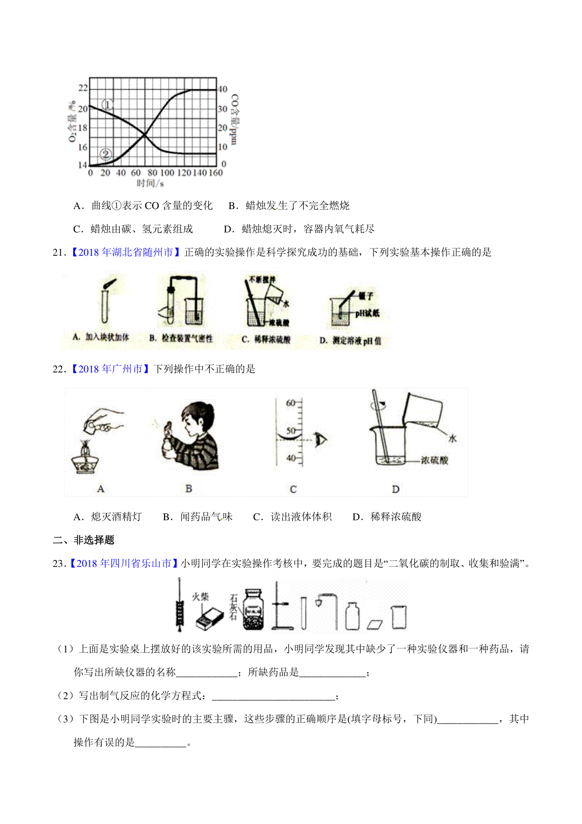 一、专题1.2 走进化学实验室(第01期)-2018年中考化学试题分项版解析汇编(原卷版)
