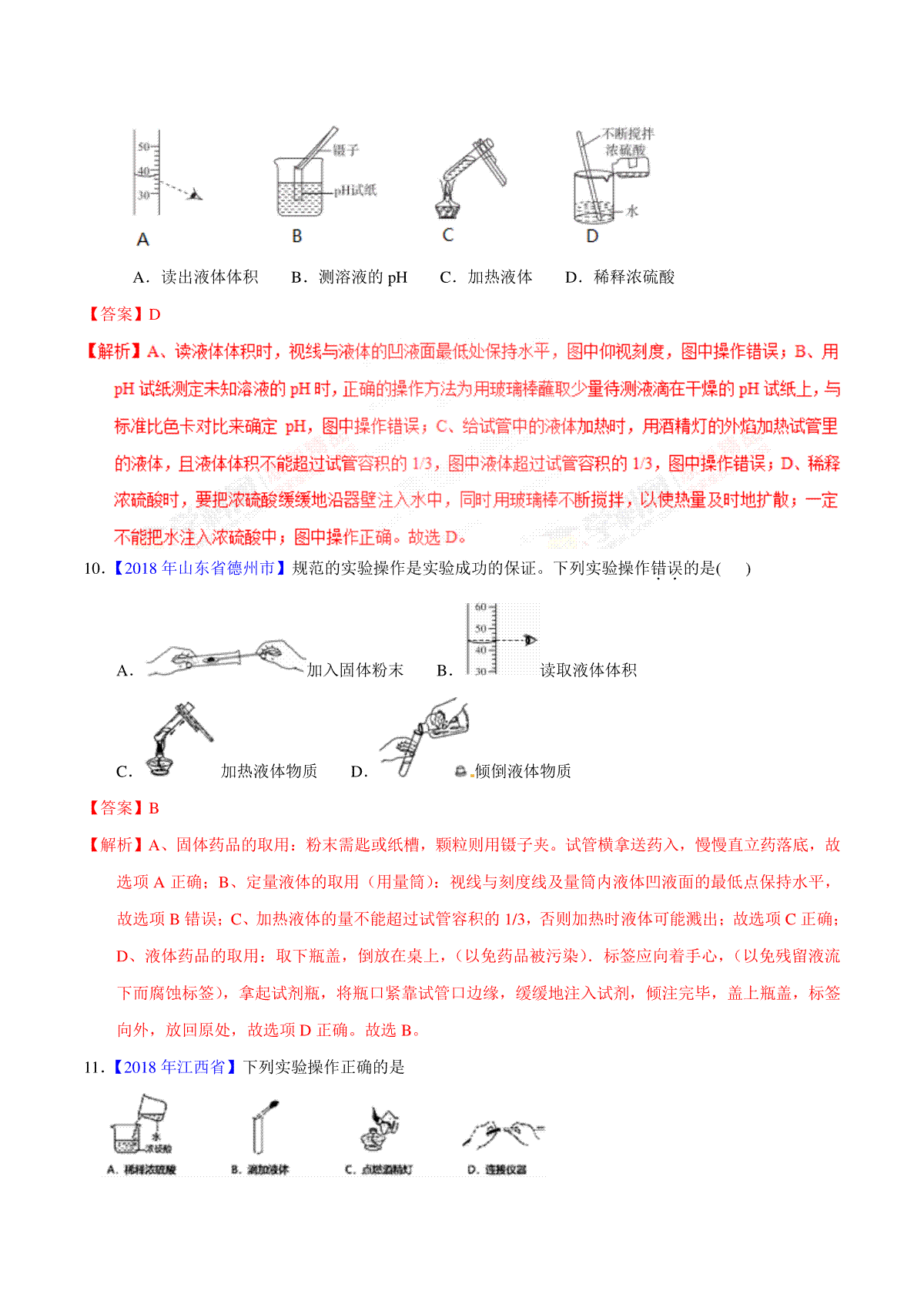 一、专题1.2 走进化学实验室(第01期)-2018年中考化学试题分项版解析汇编(解析版)