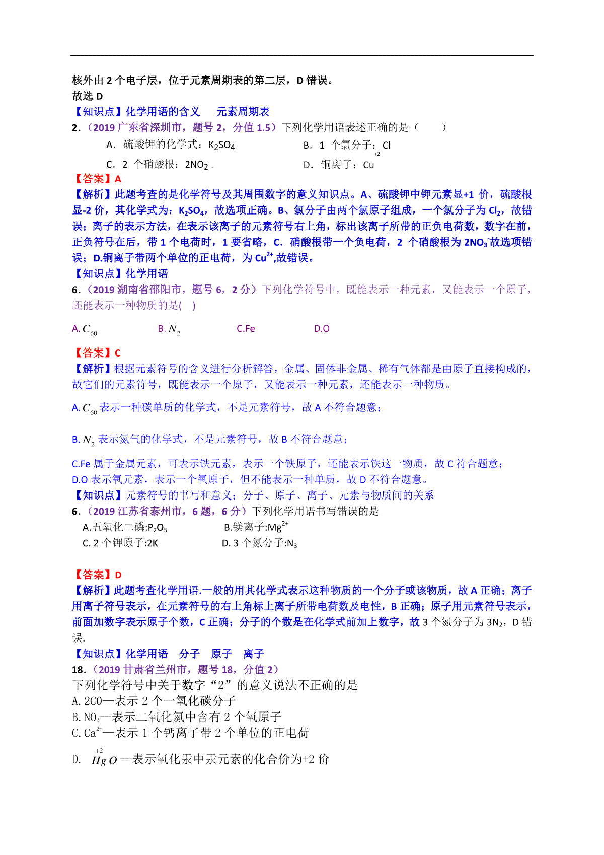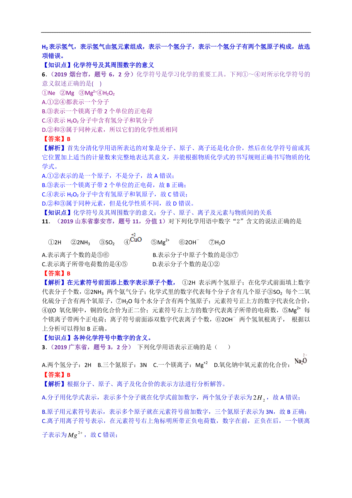 1.2019年中考化学试题分类汇编:化学用语(元素符号周围数字的含义)