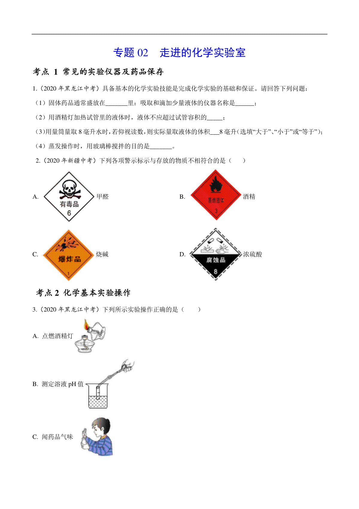 1.专题 02 走进的化学实验室-2020年中考真题化学分项汇编(原卷版)