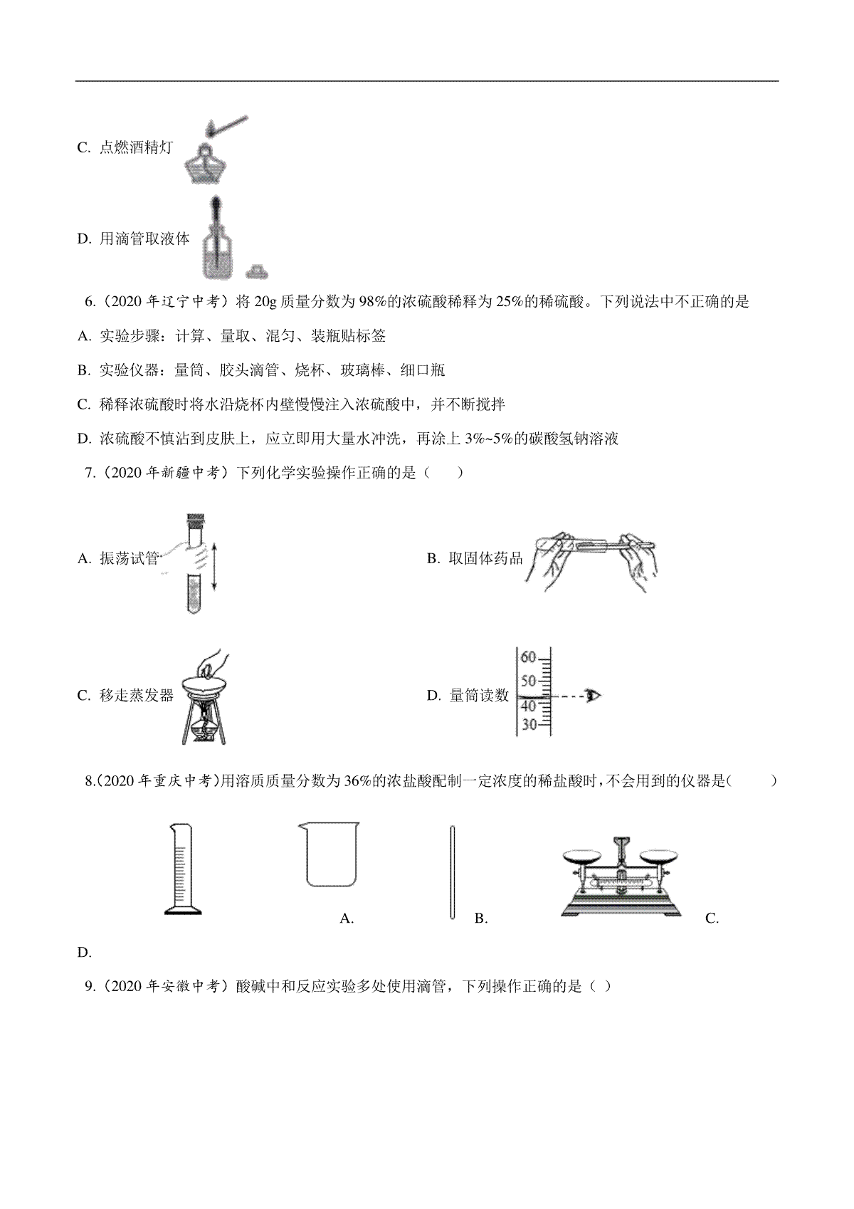 一、专题 02 走进的化学实验室-2020年中考真题化学分项汇编(原卷版)