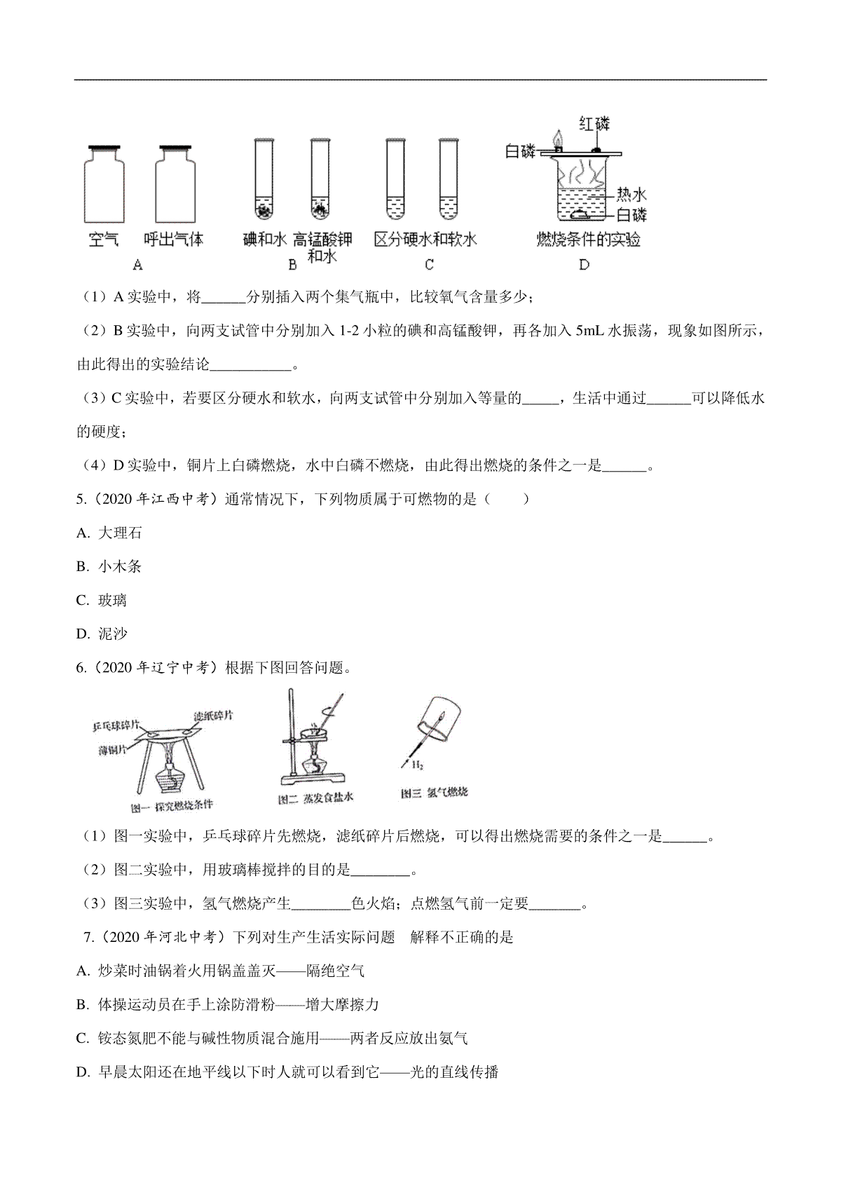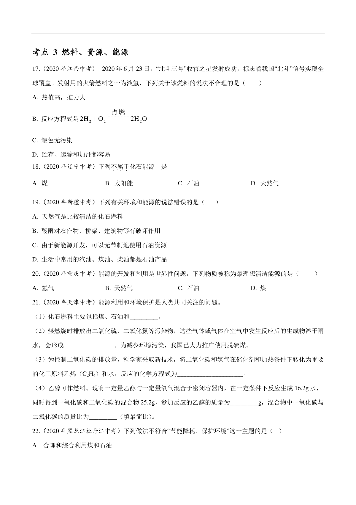 1.专题 10 燃料及其利用-2020年中考真题化学分项汇编(原卷版)