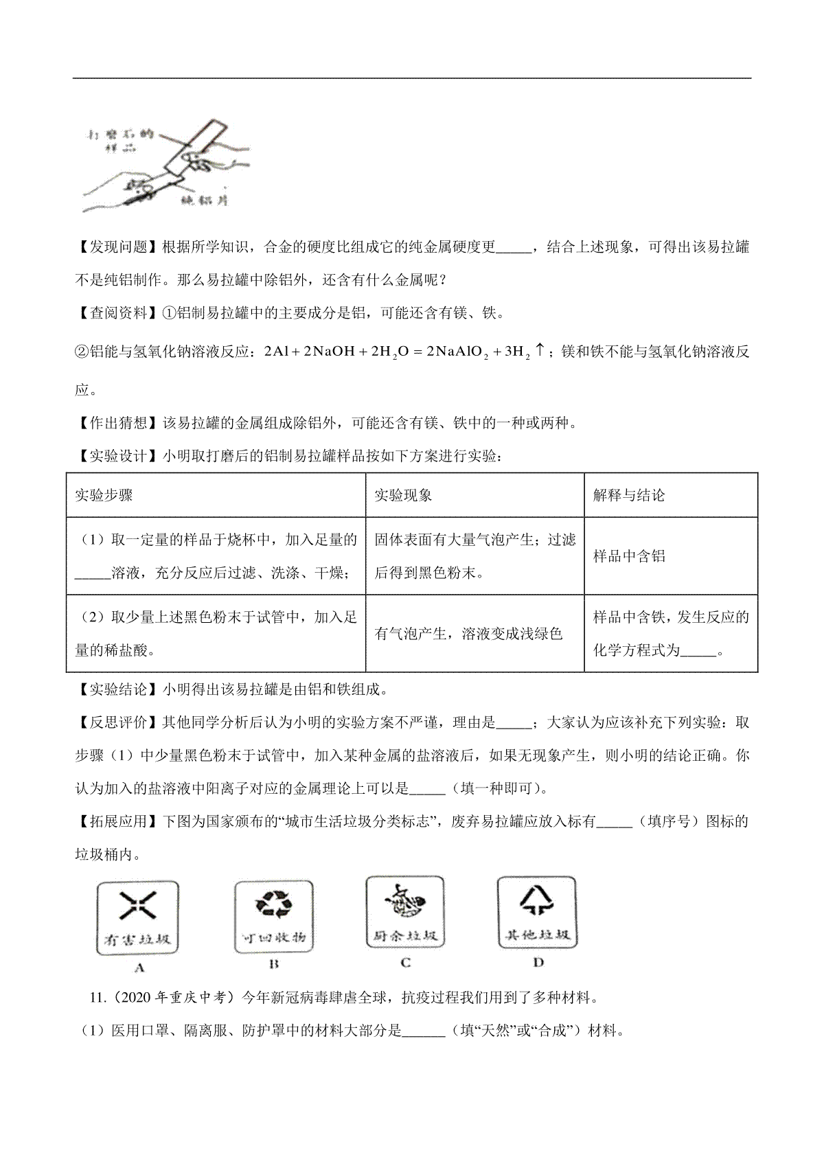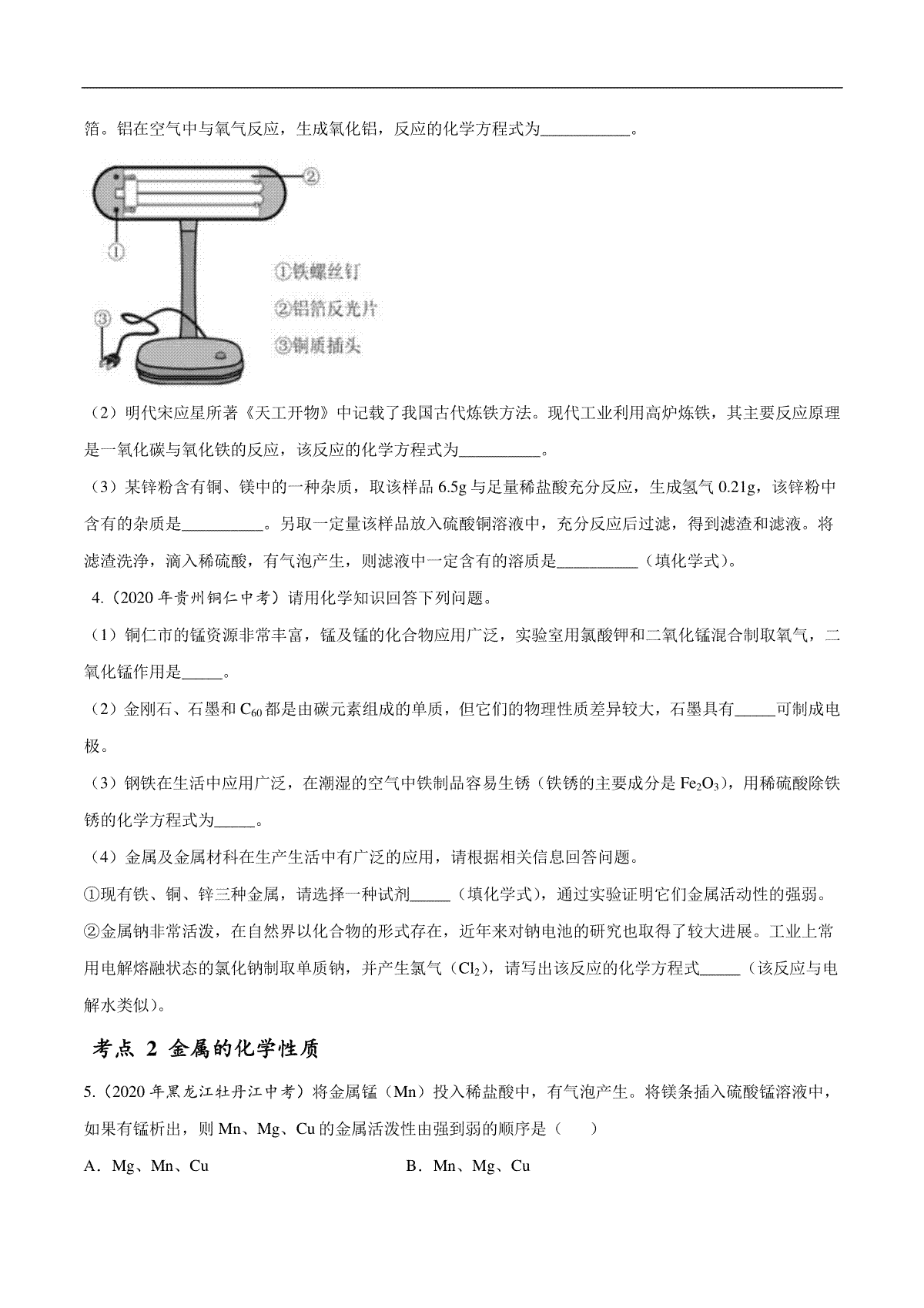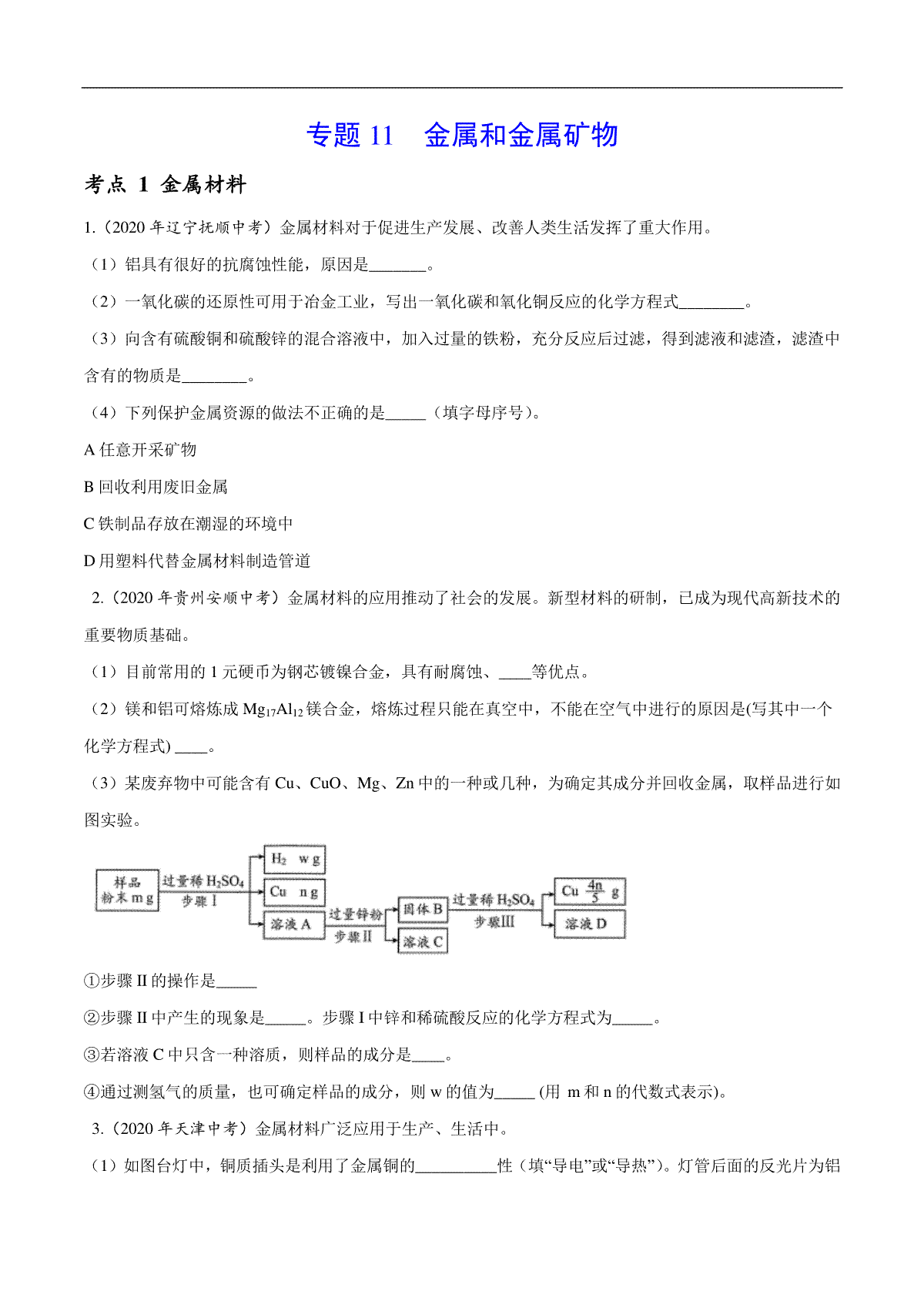一、专题11 金属和金属矿物-2020年中考真题化学分项汇编(原卷版)