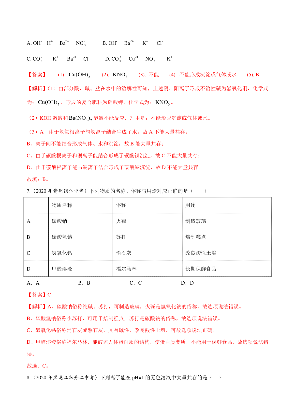 如果你想下载专题14 盐和化肥-2020年中考真题化学分项汇编(解析版)DOC或PDF版,请点击本文末链接!