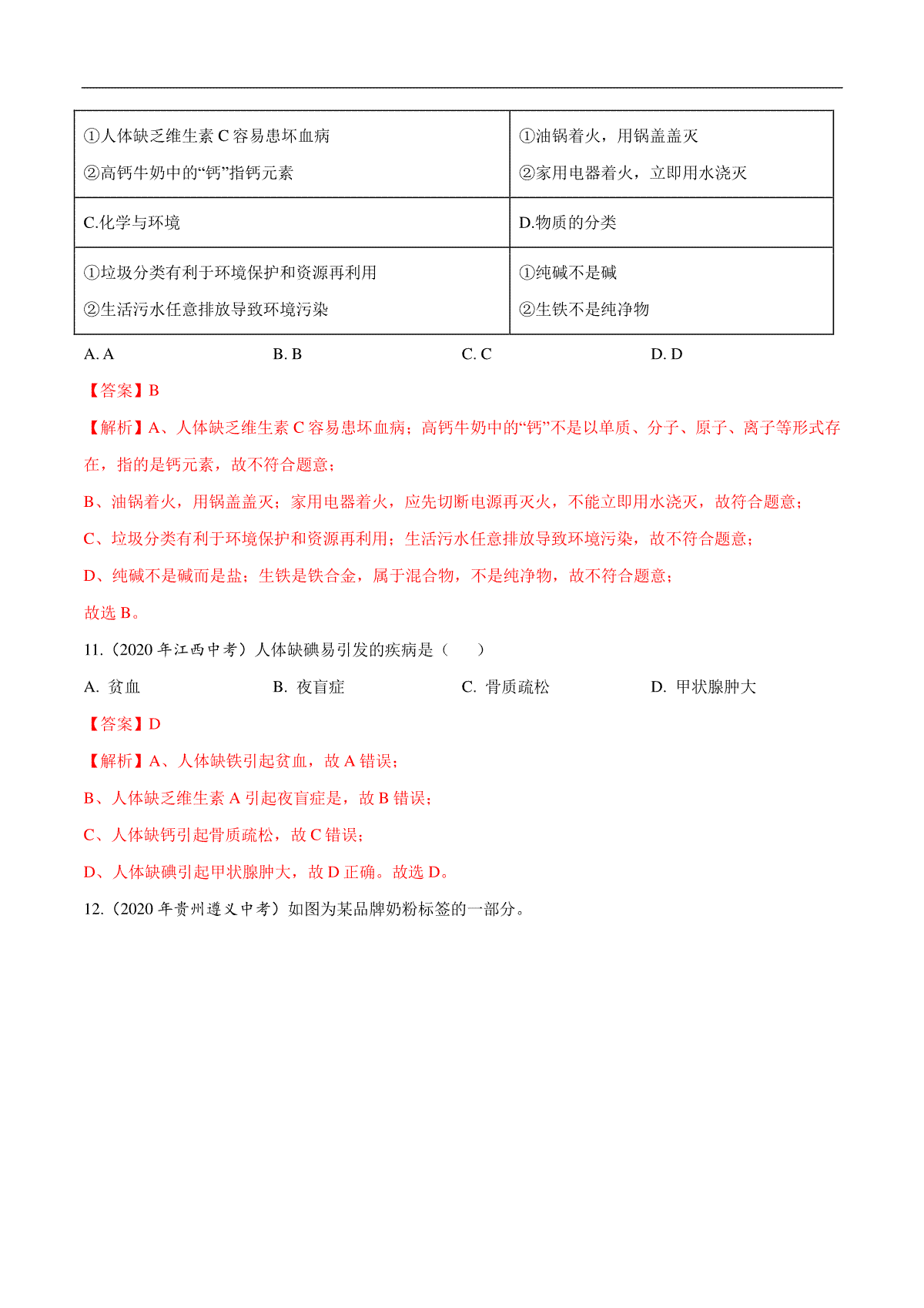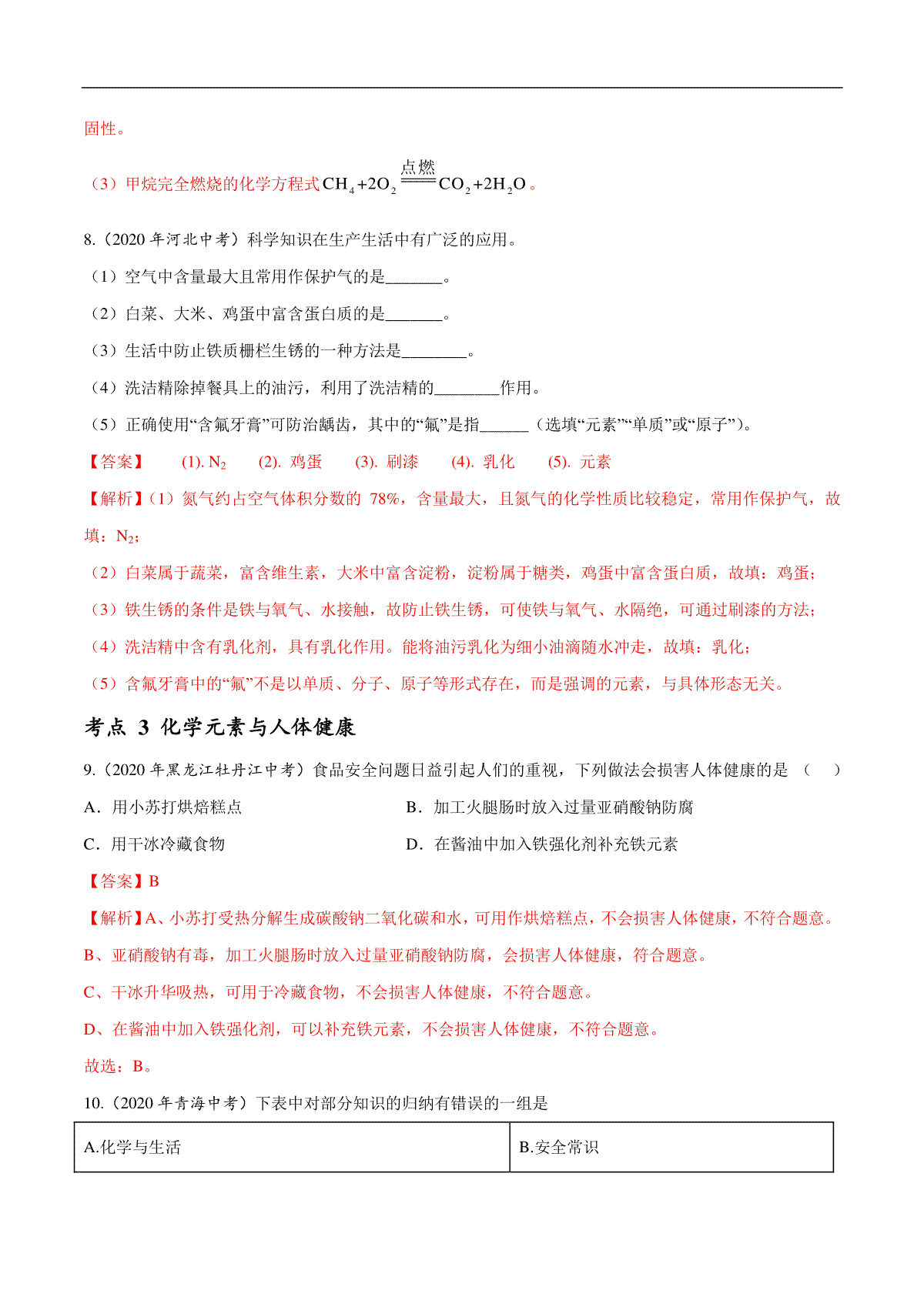 一、专题15 化学与生活-2020年中考真题化学分项汇编(解析版)