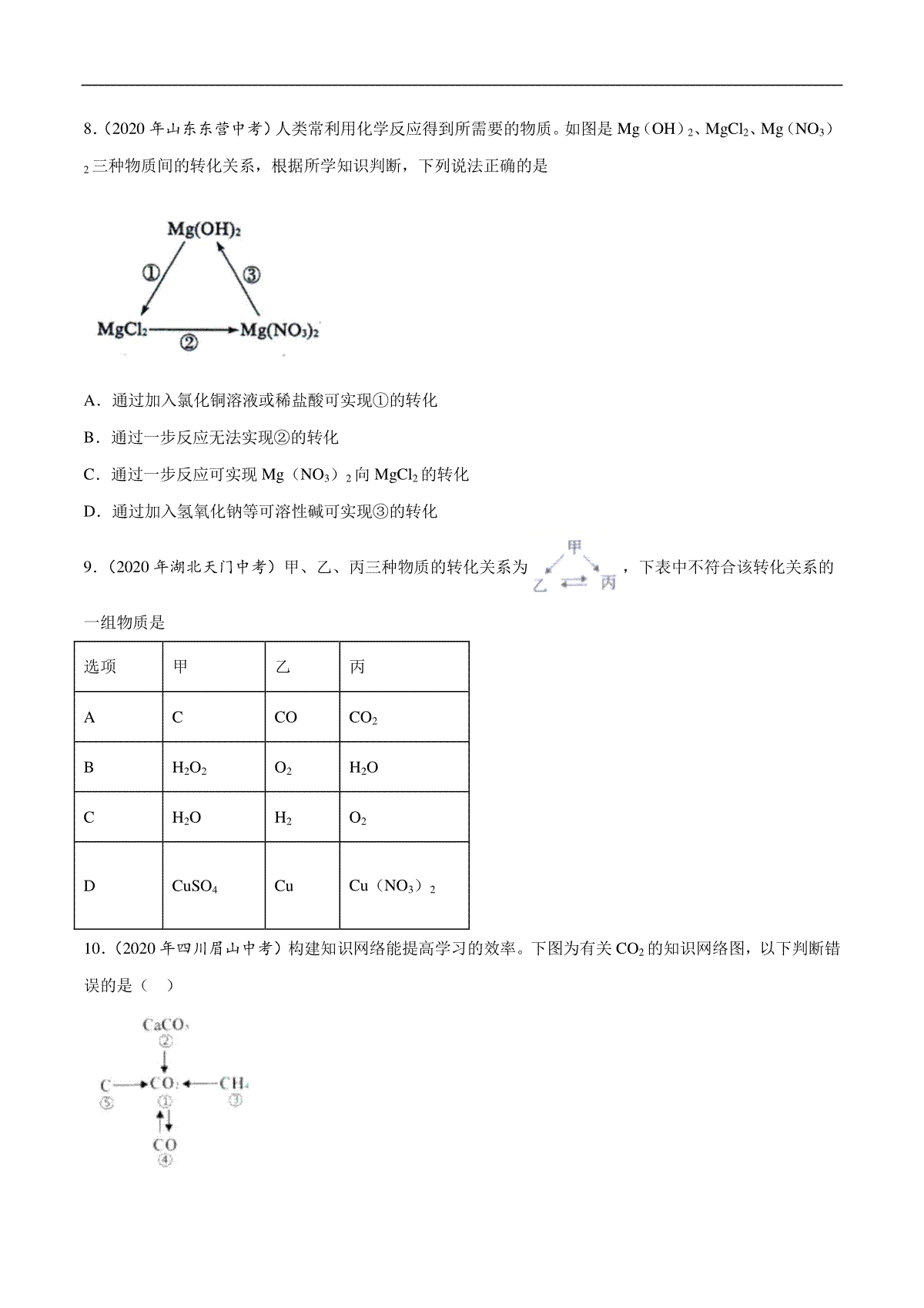 1.专题16 物质的相互反应与转化-2020年中考真题化学分项汇编(原卷版)