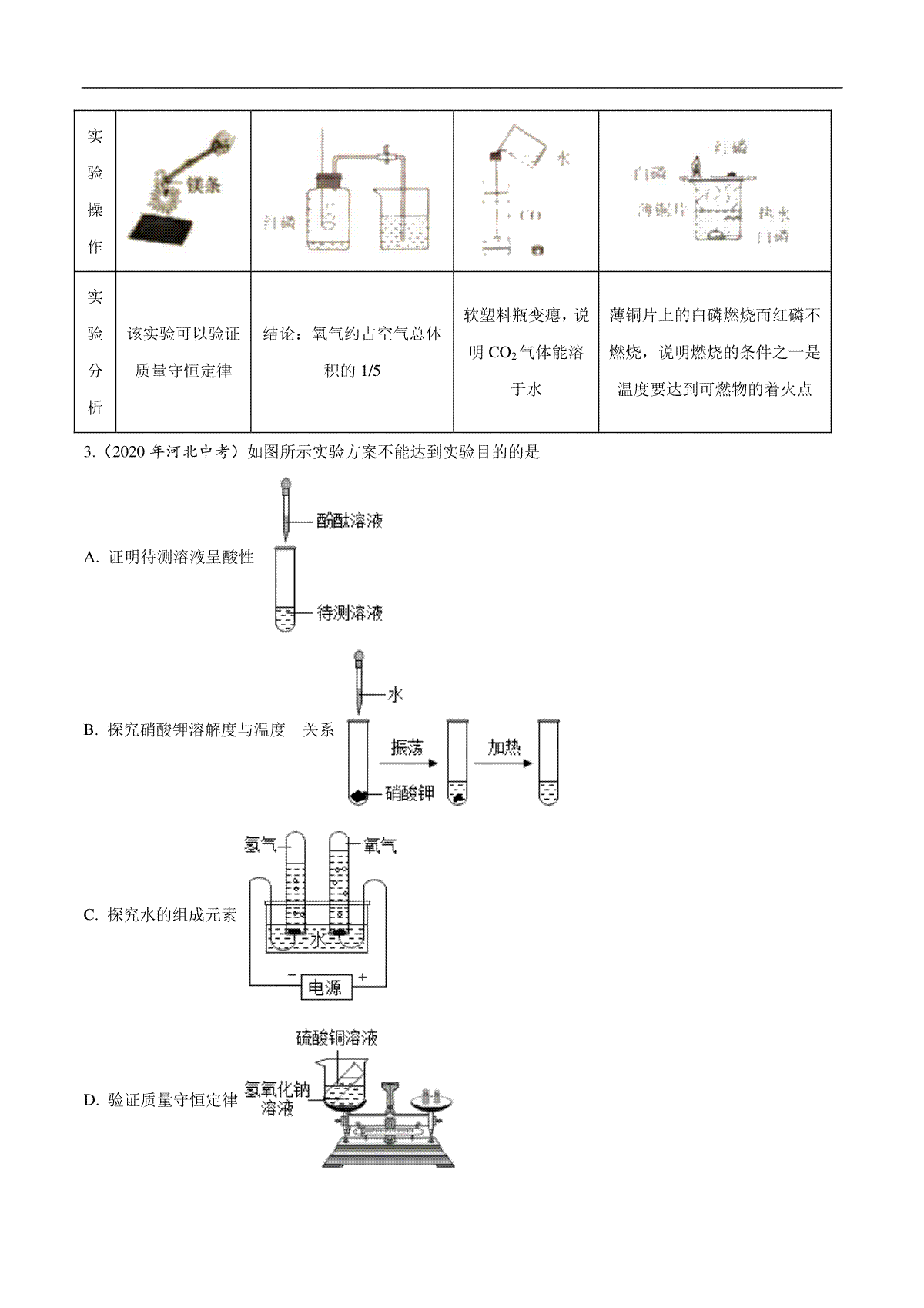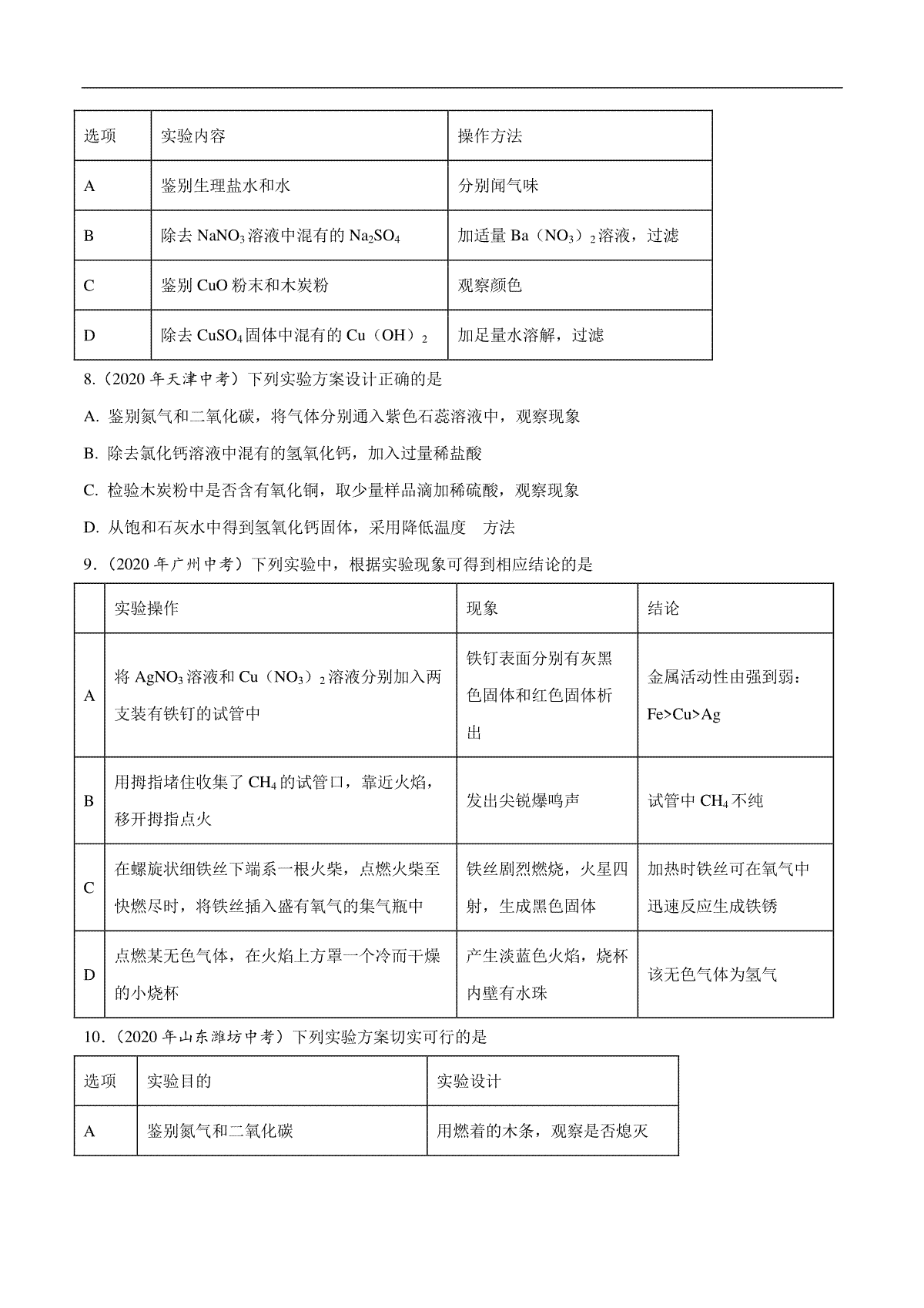 1.专题17 实验方案的设计与评价-2020年中考真题化学分项汇编(原卷版)