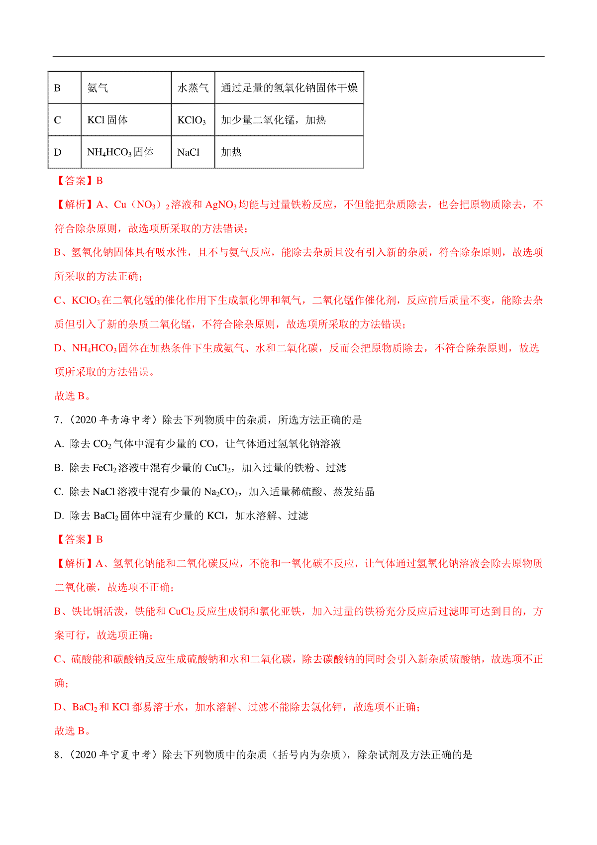 一、专题18 物质的检验、鉴别与除杂-2020年中考真题化学分项汇编(解析版)
