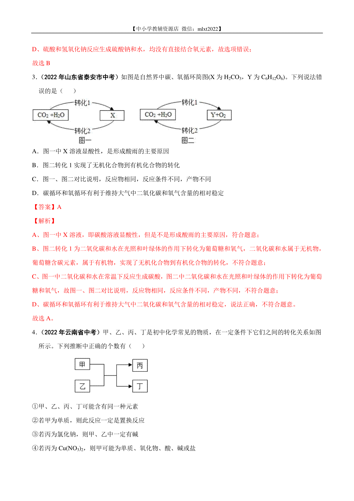 如果你想下载专题16 物质的相互反应与转化-2022年中考化学真题分项汇编(全国通用)(第01期)(解析版)DOC或PDF版,请点击本文末链接!