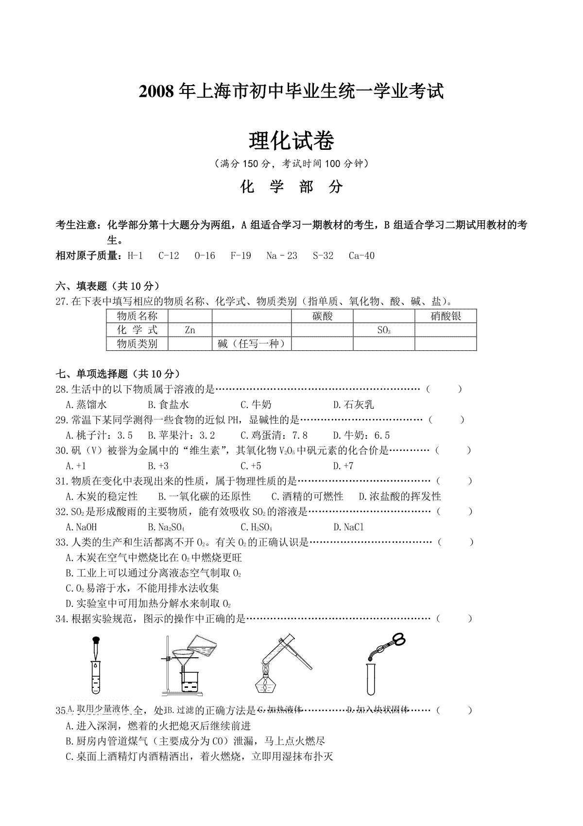 如果你想下载2008年上海市中考化学试卷及答案DOC或PDF版,请点击本文末链接!