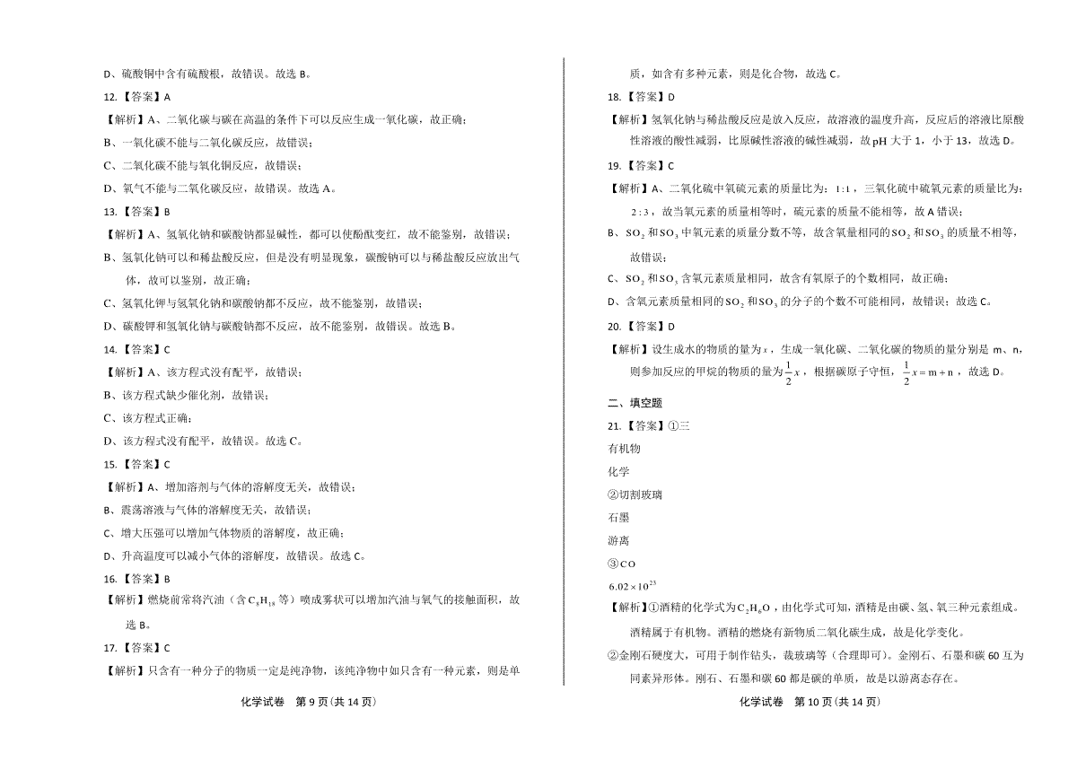 如果你想下载2019年上海市初中毕业统一学业考试 化学试卷及答案(双面解析版)DOC或PDF版,请点击本文末链接!