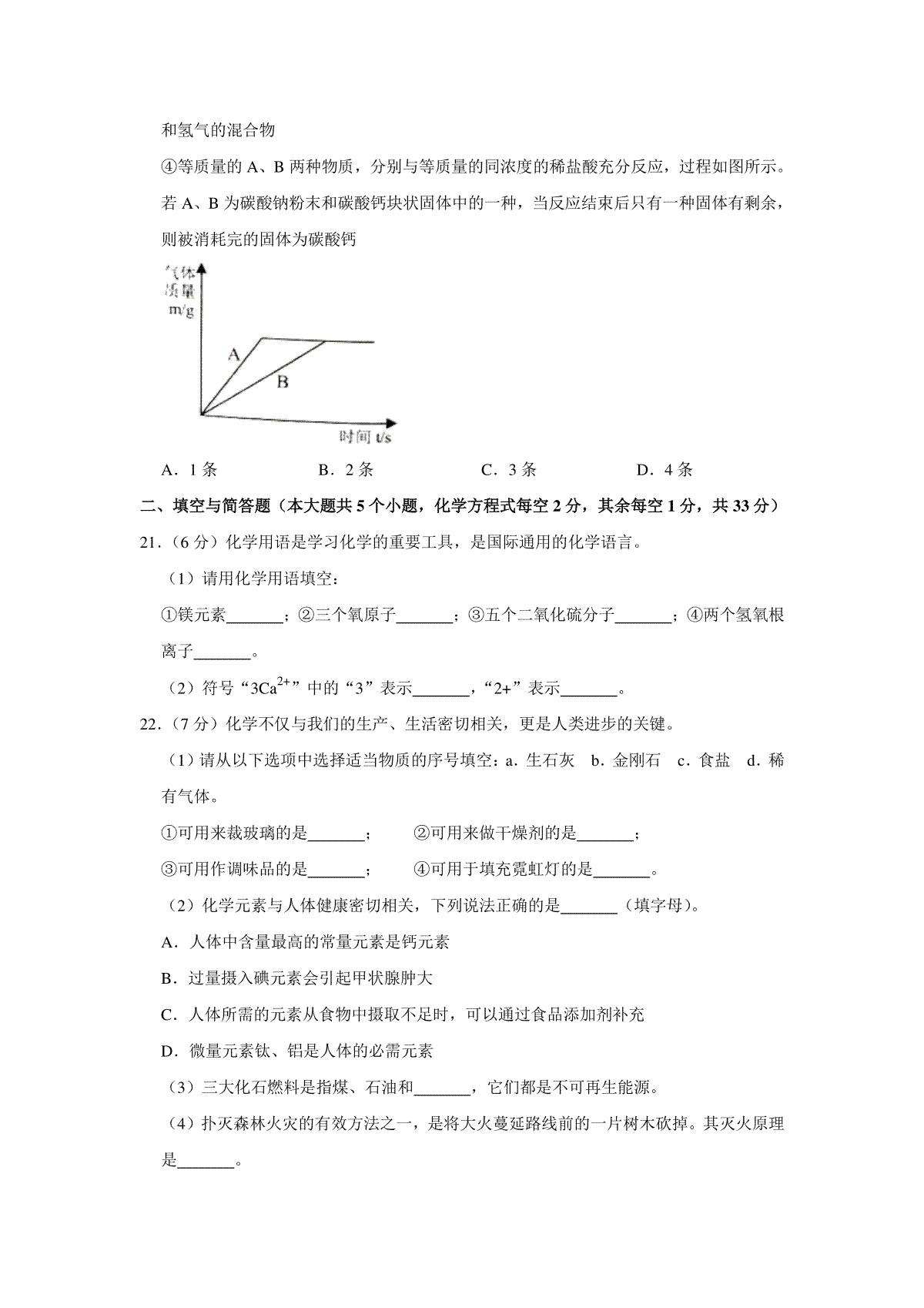四川省成都市2021年中考化学试题(原卷版)