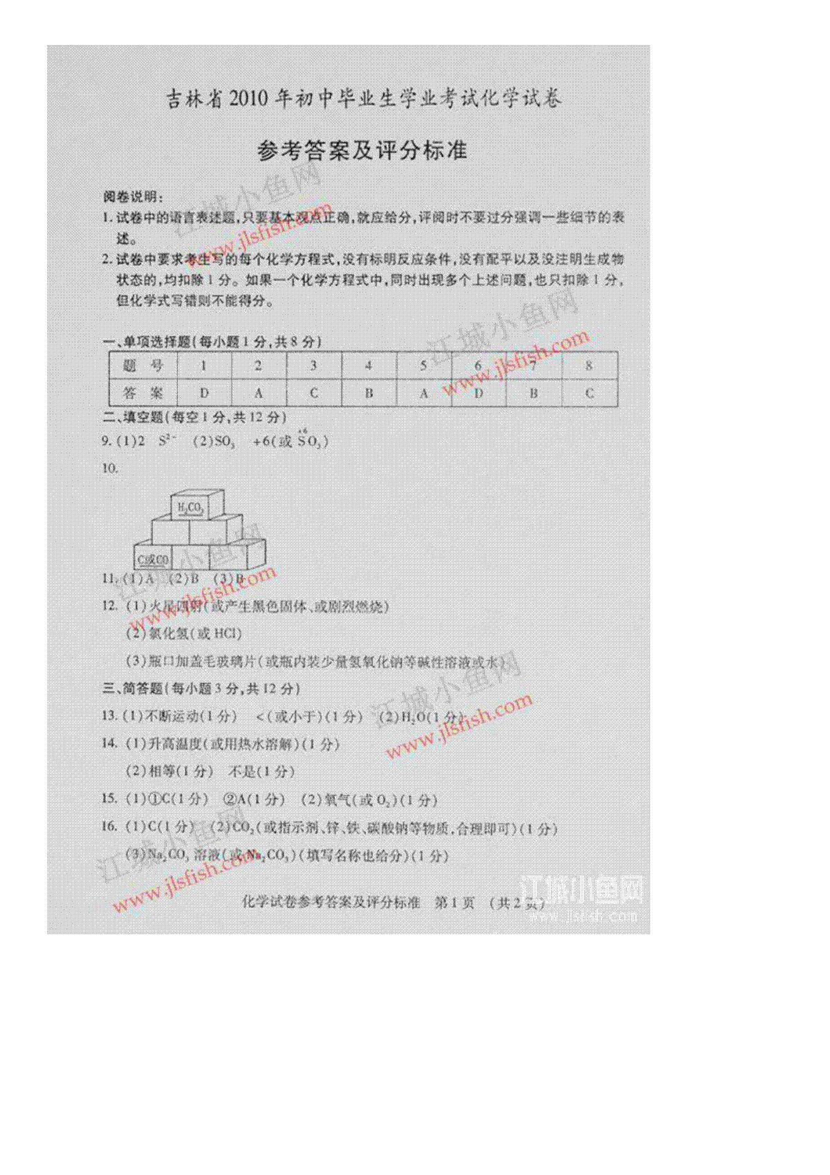 如果你想下载2010年吉林省中考化学试题及答案DOC或PDF版,请点击本文末链接!