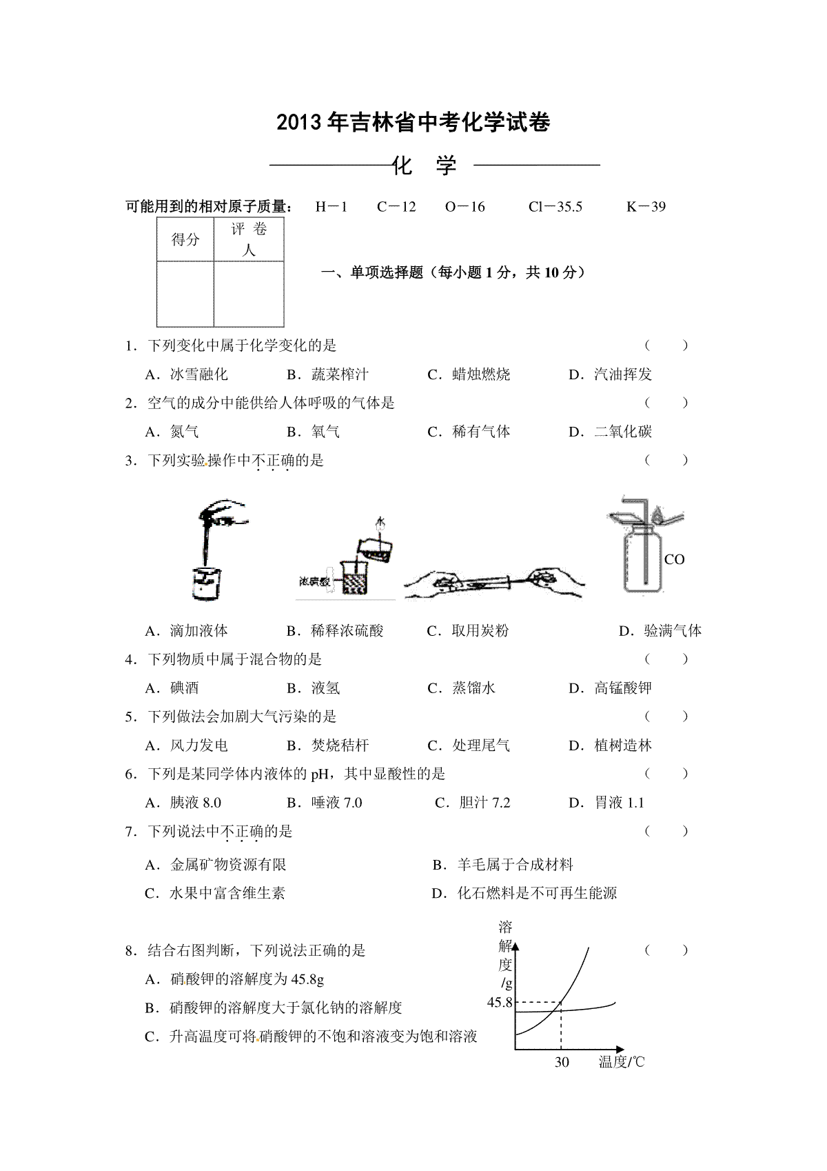 下载2013年吉林省中考化学试题及答案PDF格式或doc