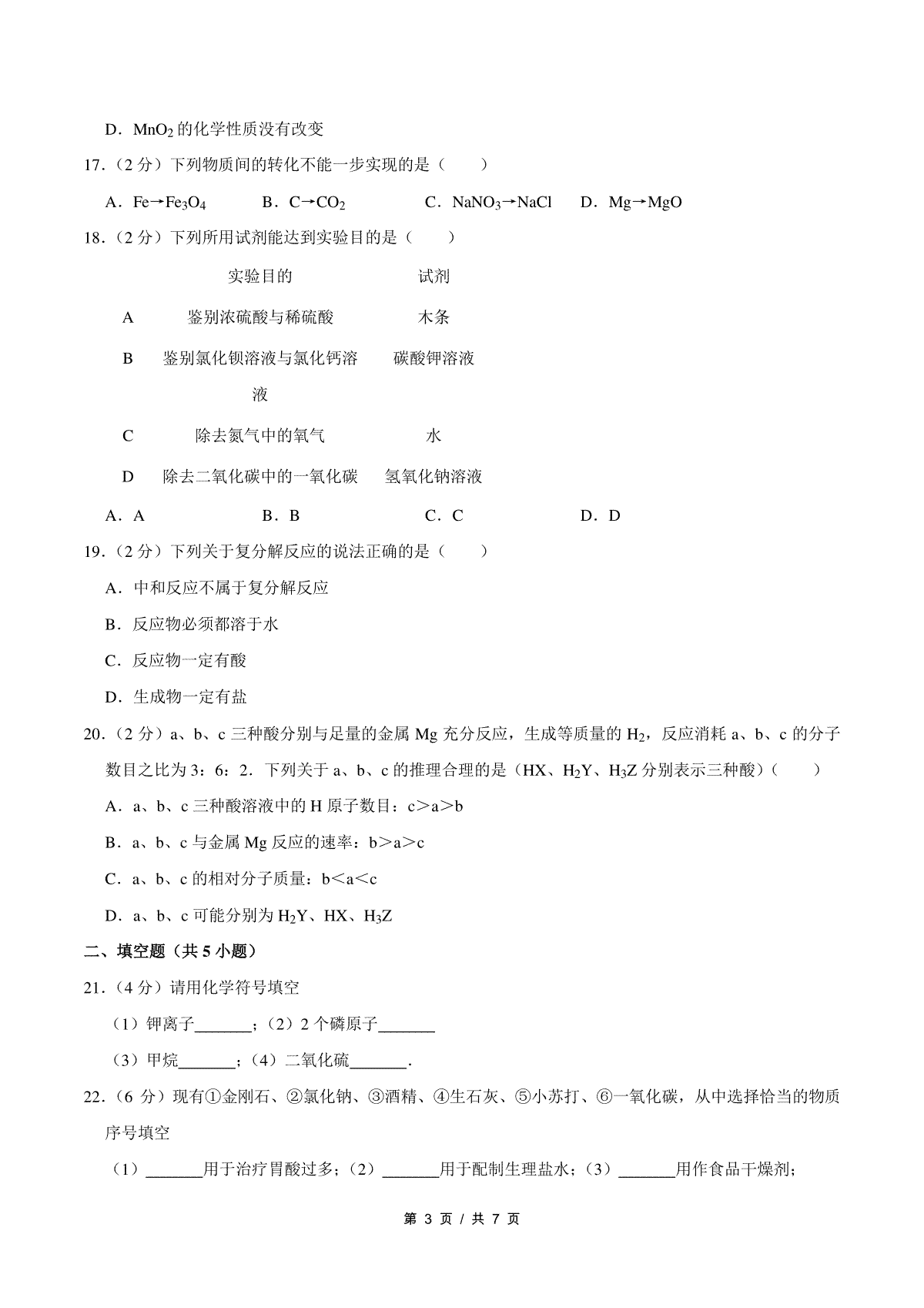 2017年吉林省中考化学试题及答案