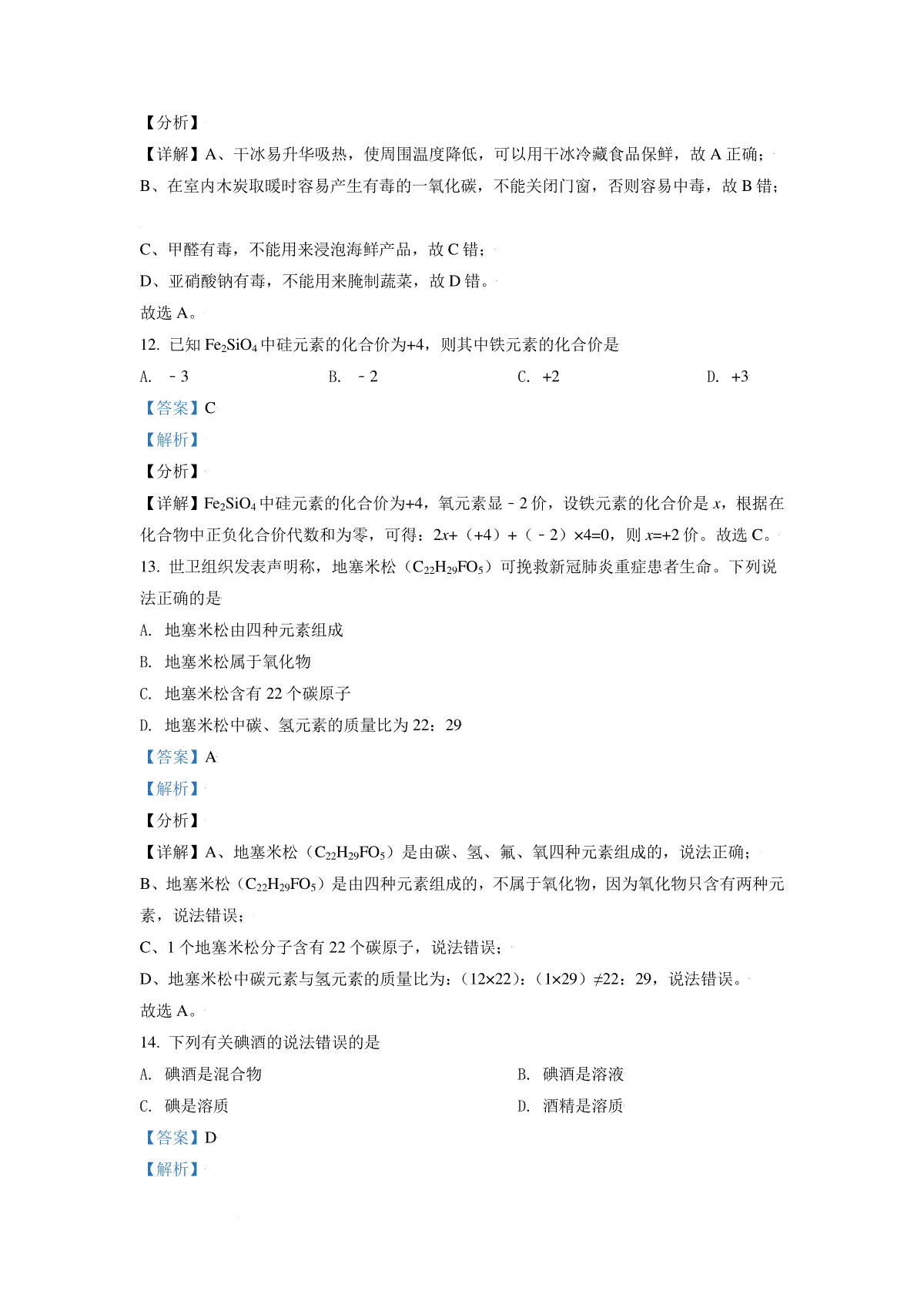2.精品解析:广西玉林市2021年中考化学试题(原卷版)