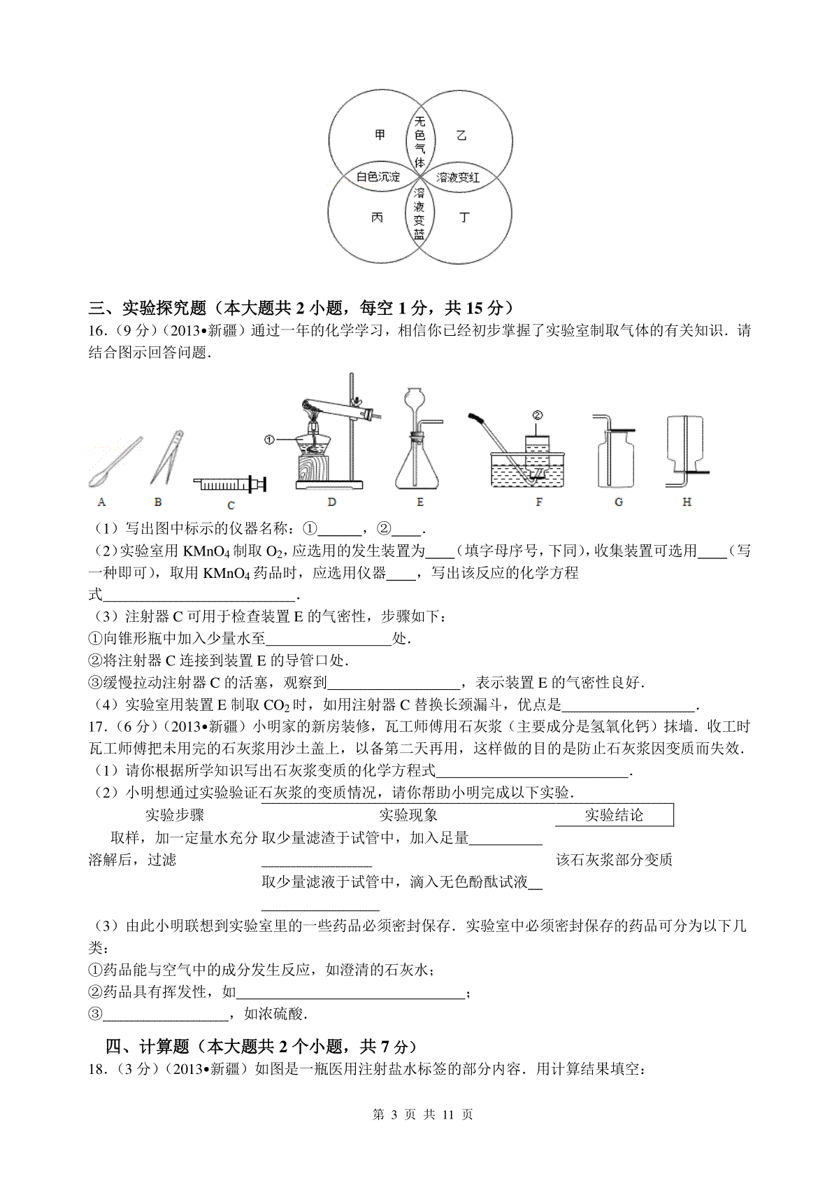 3.2011年新疆自治区、生产建设兵团中考化学试卷及解析