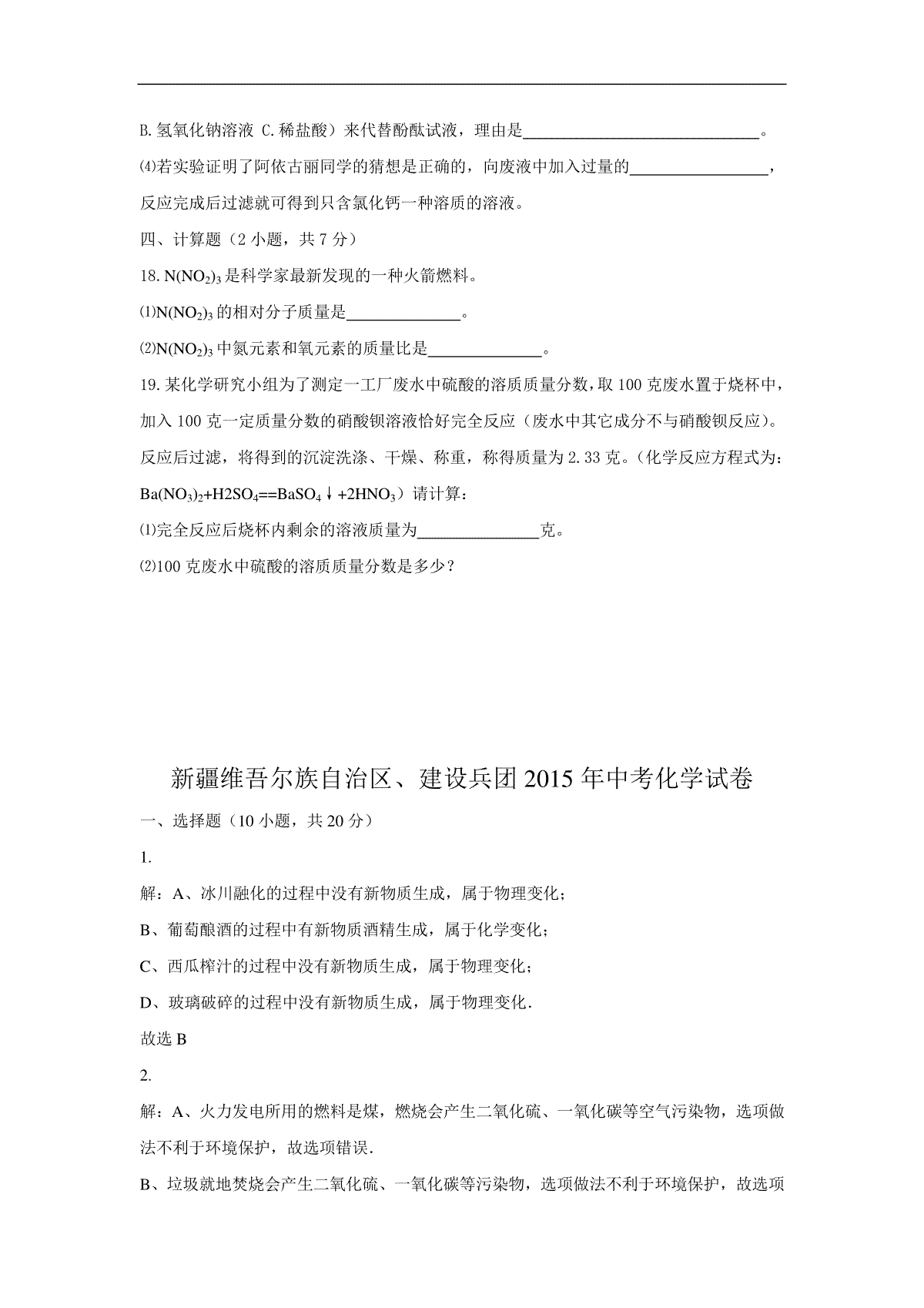 下载2015年新疆自治区、生产建设兵团中考化学试题及解析PDF格式或doc