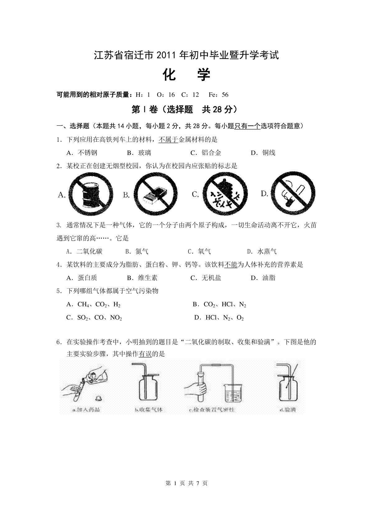 下载2011年江苏省宿迁市中考化学试题及答案PDF格式或doc