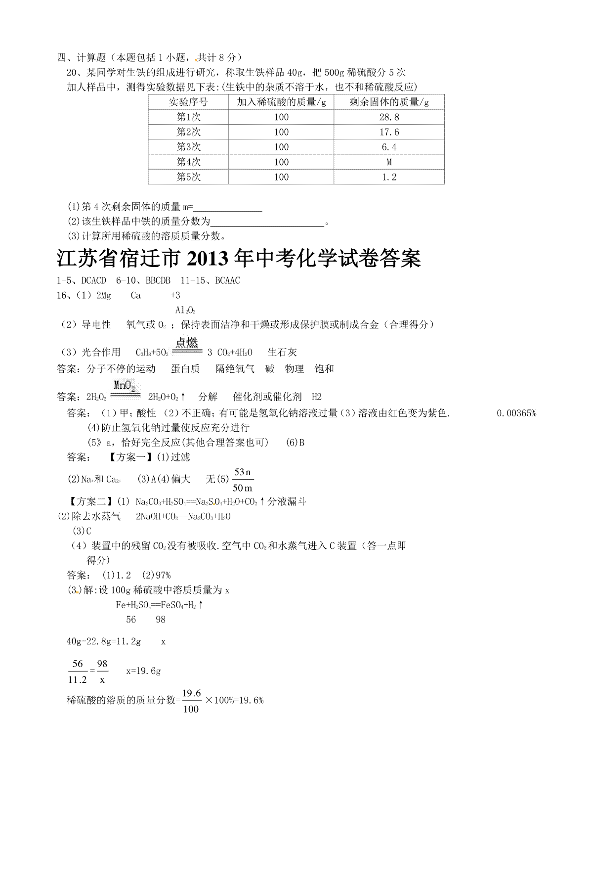 下载2013年江苏省宿迁市中考化学试题及答案PDF格式或doc