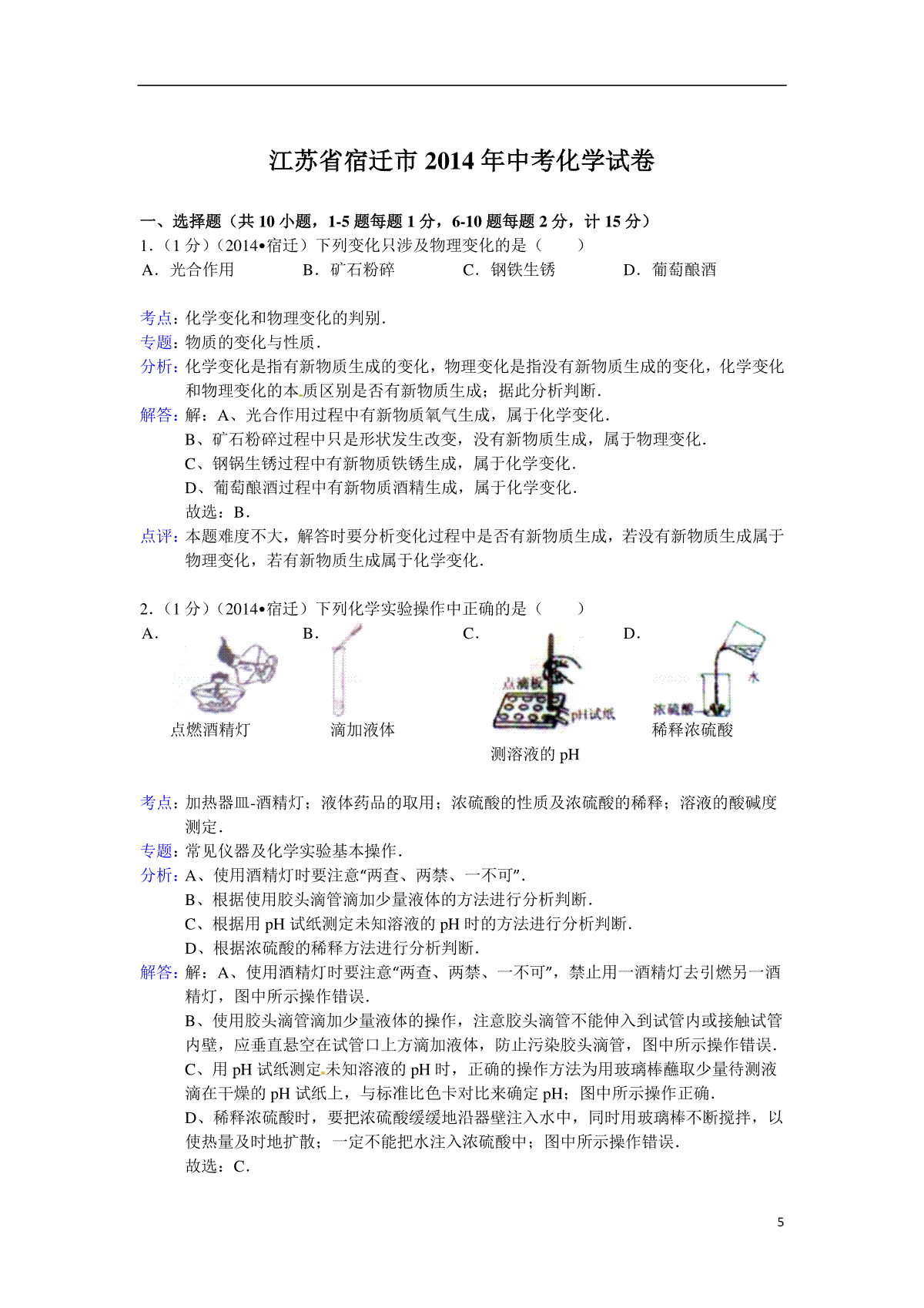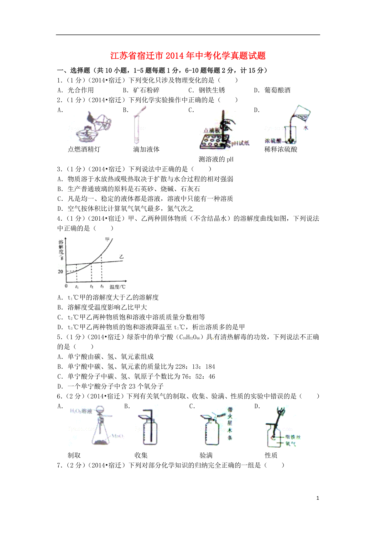 下载2014年江苏省宿迁市中考化学试题及答案PDF格式或doc