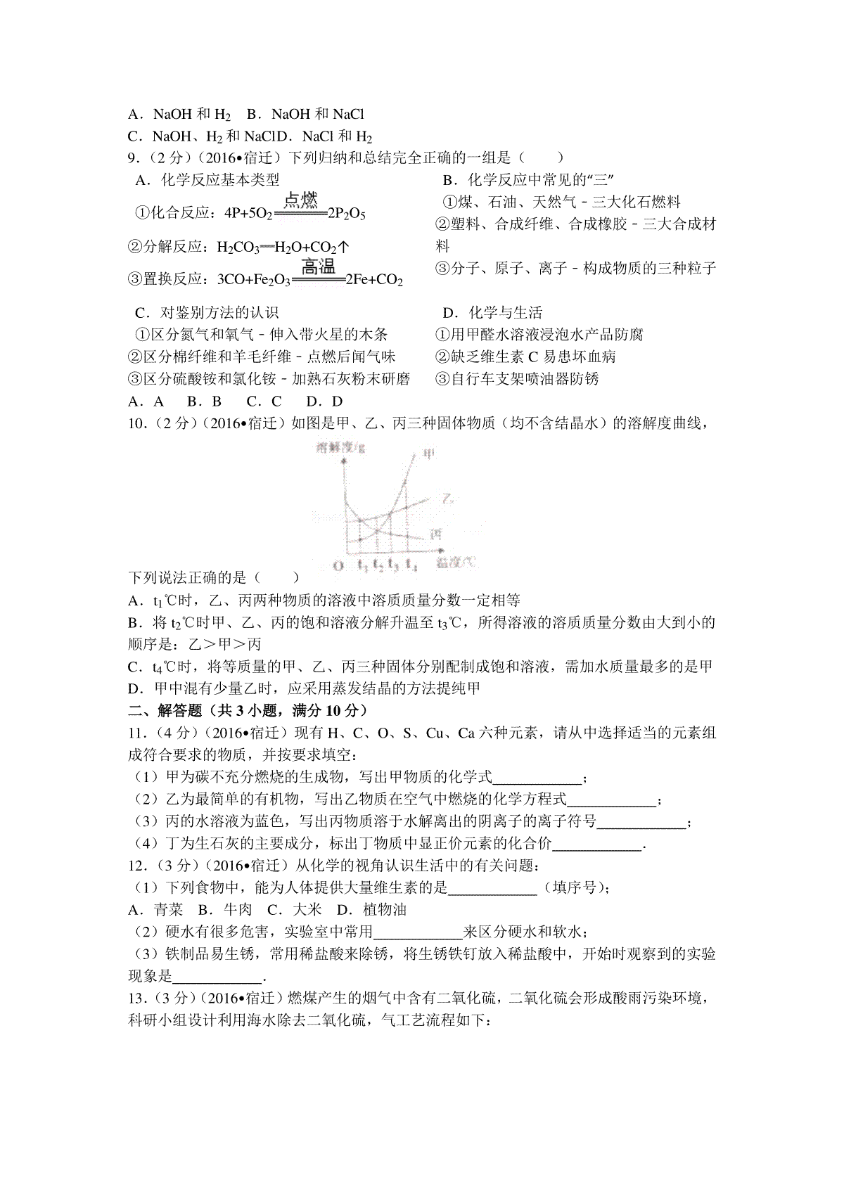 下载2016年江苏省宿迁市中考化学试题及答案PDF格式或doc