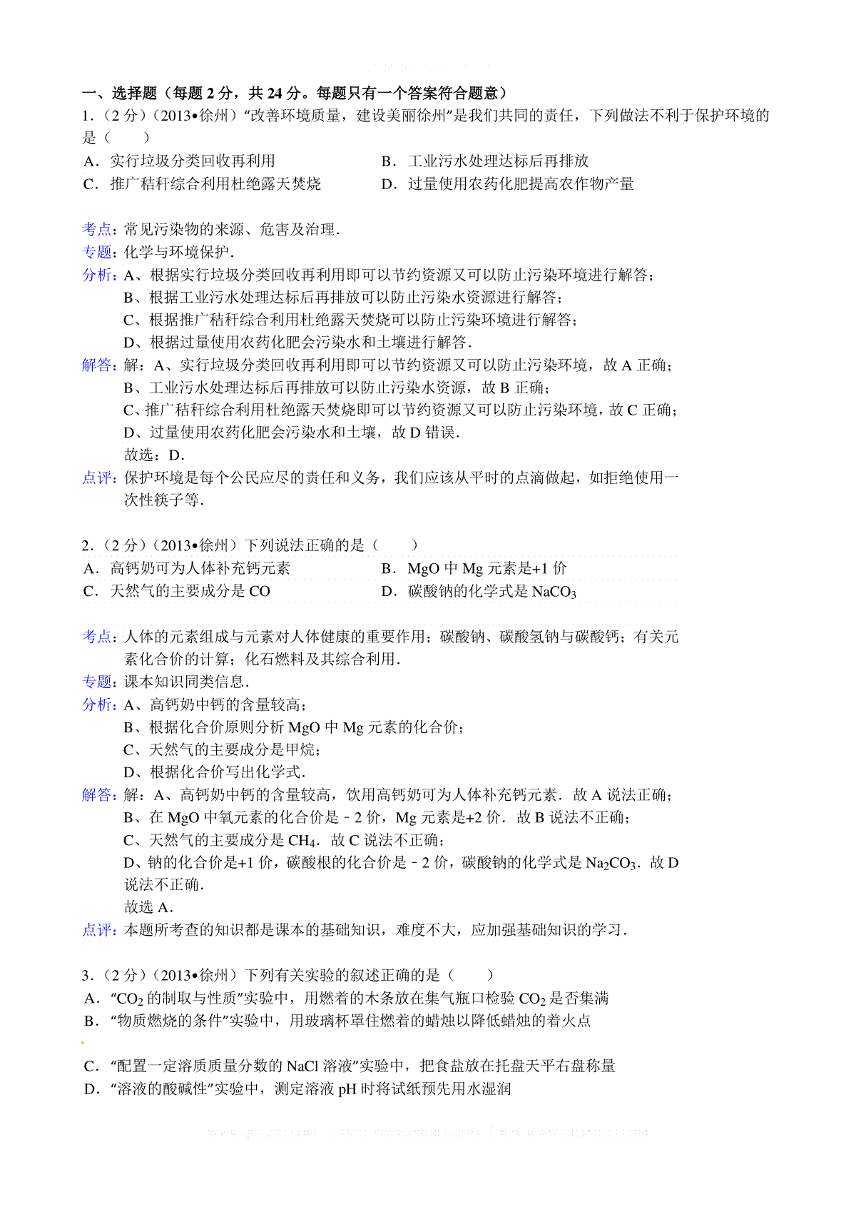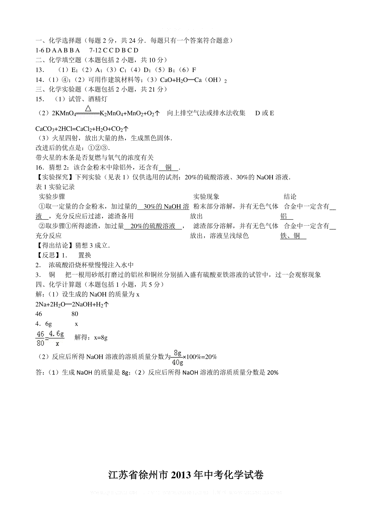 如果你想下载2013年江苏省徐州市中考化学试卷及答案DOC或PDF版,请点击本文末链接!