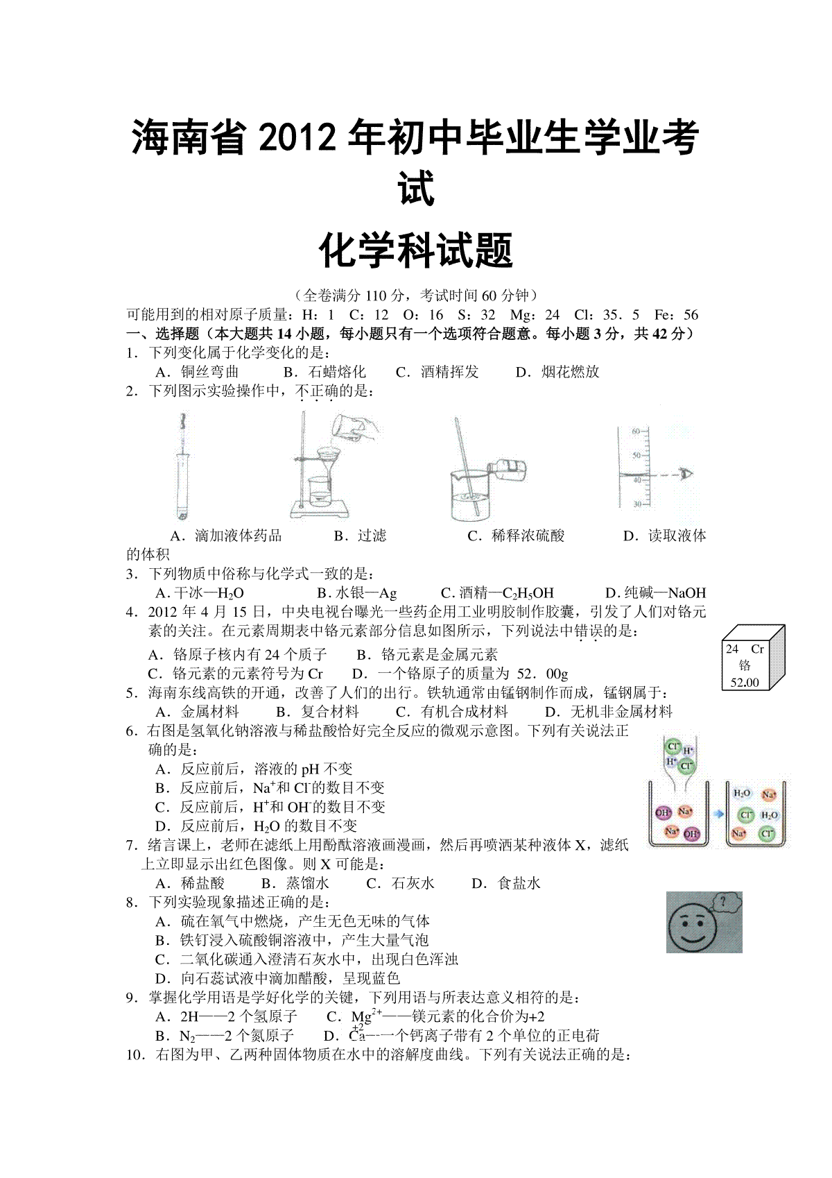 如果你想下载2012年海南中考化学试题及答案DOC或PDF版,请点击本文末链接!