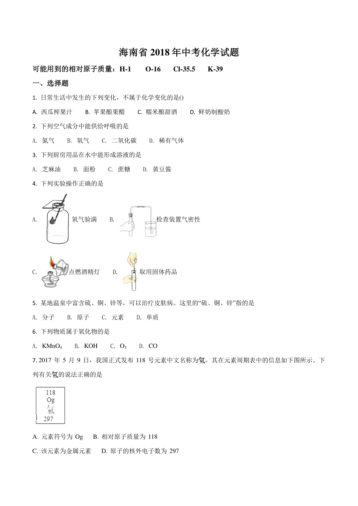 如果你想下载2018年海南中考化学试题及答案DOC或PDF版,请点击本文末链接!