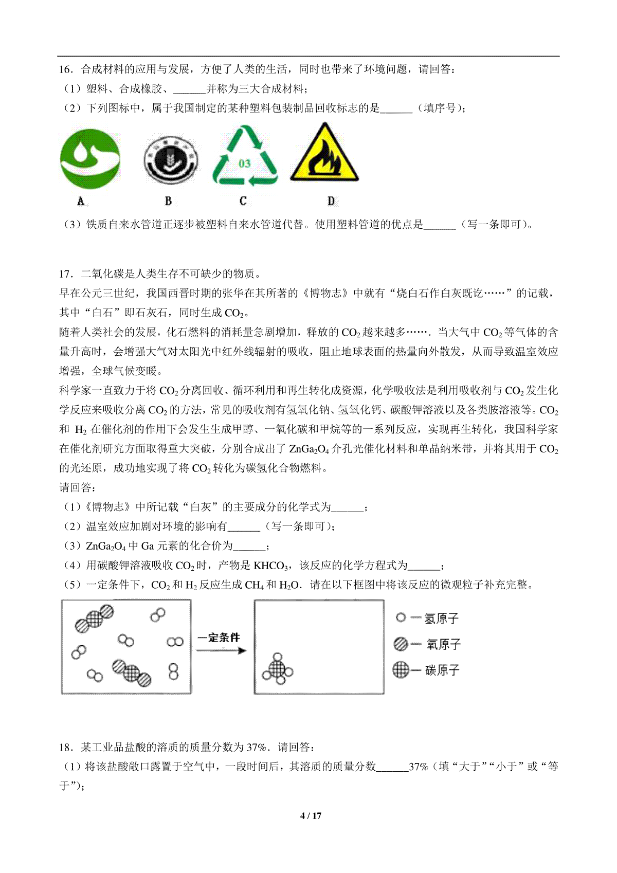 3.2017年海南中考化学试题及答案