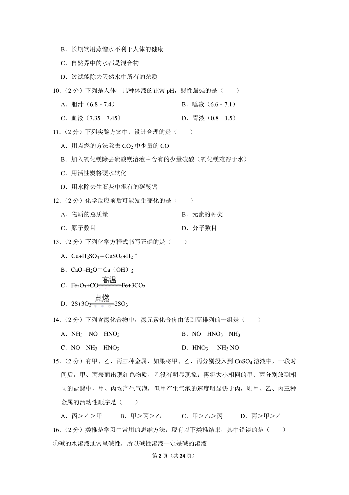 6.2020年湖北省黄冈市中考化学试卷(含解析版)