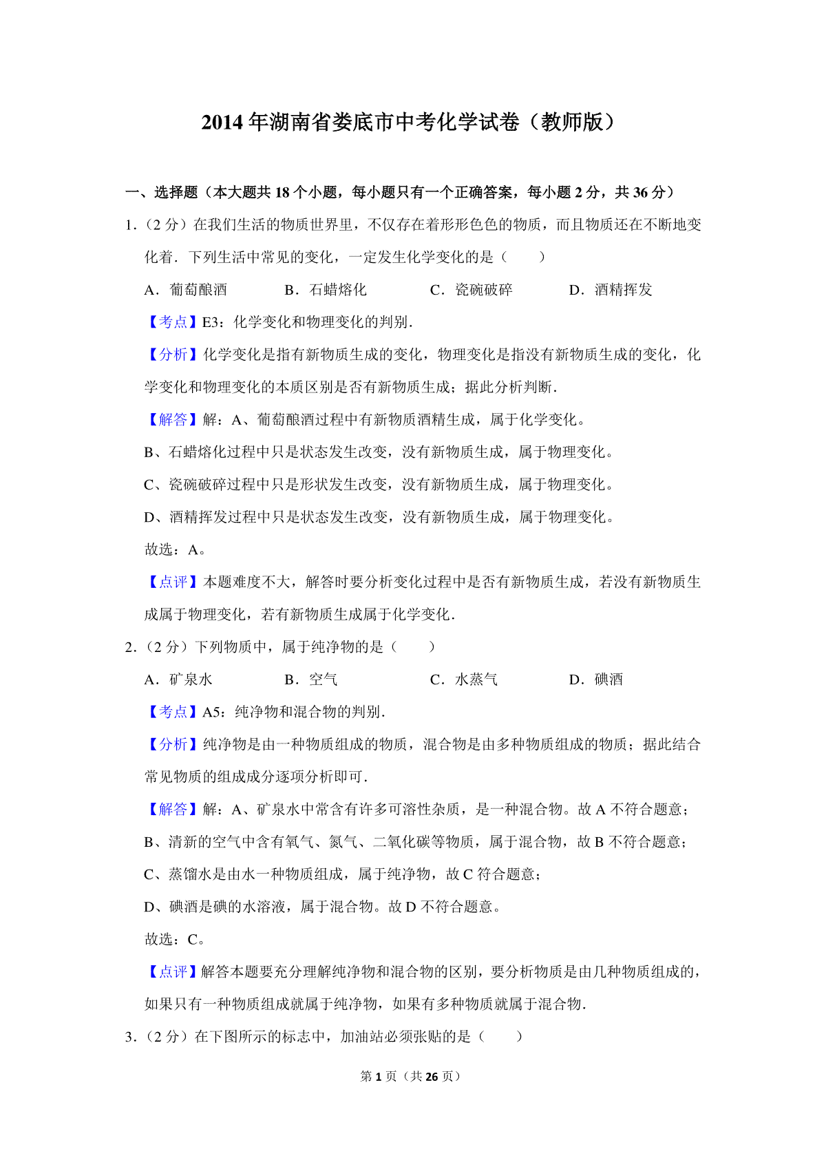 一、2014年湖南省娄底市中考化学试卷(教师版) 学霸冲冲冲shop348121278.taobao.