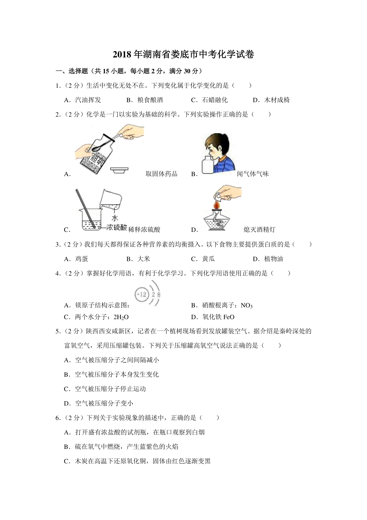 一、2018年湖南省娄底市中考化学试卷(学生版) 学霸冲冲冲shop348121278.taobao.