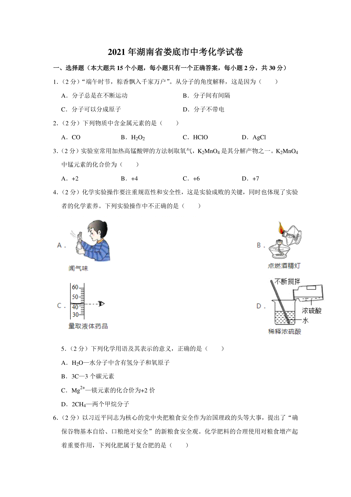 如果你想下载2021年湖南省娄底市中考化学真题DOC或PDF版,请点击本文末链接!