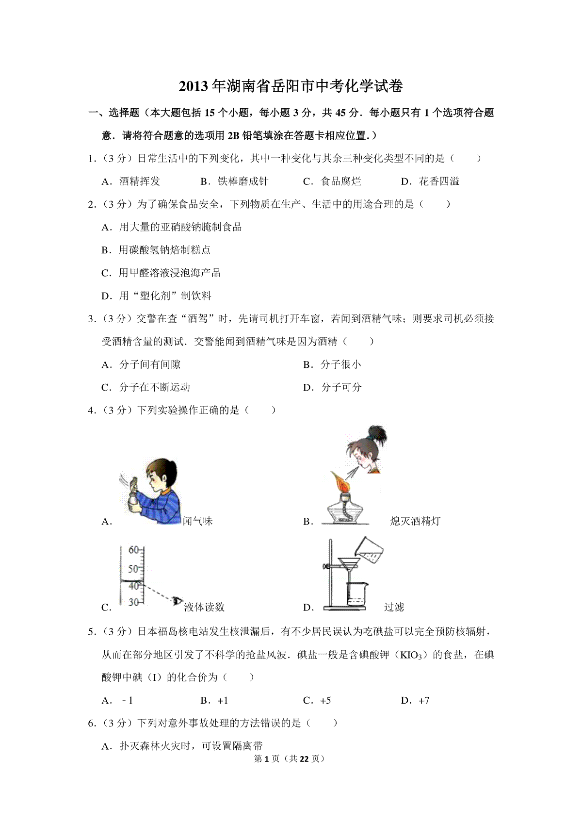 一、2013年湖南省岳阳市中考化学试卷(含解析版)
