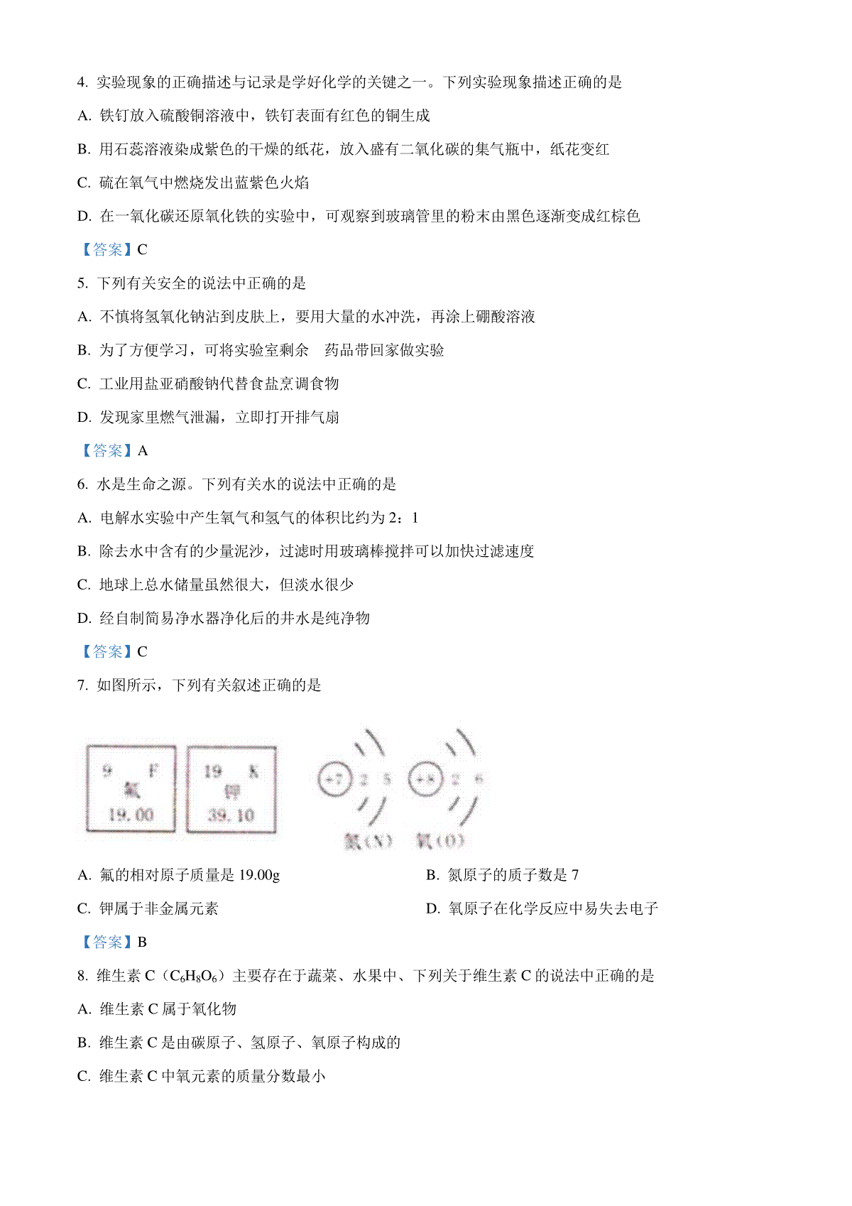 3.黑龙江省哈尔滨市2021年中考化学试题(解析版)
