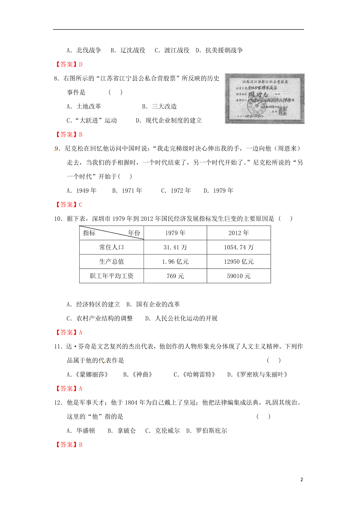 7.广东省深圳市2015年中考历史真题试题(含答案)